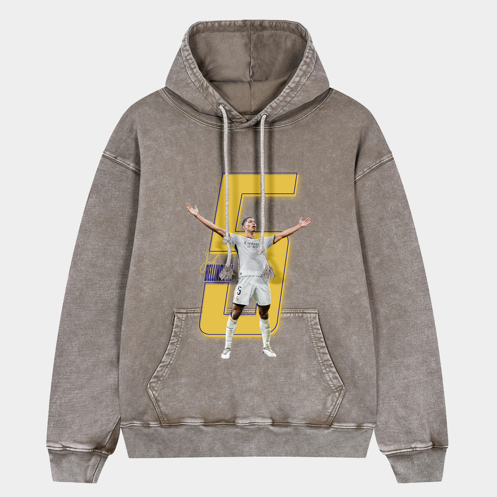 Real Madrid Bellingham Scoring Cheer Oversized Washed Pullover Hoodie