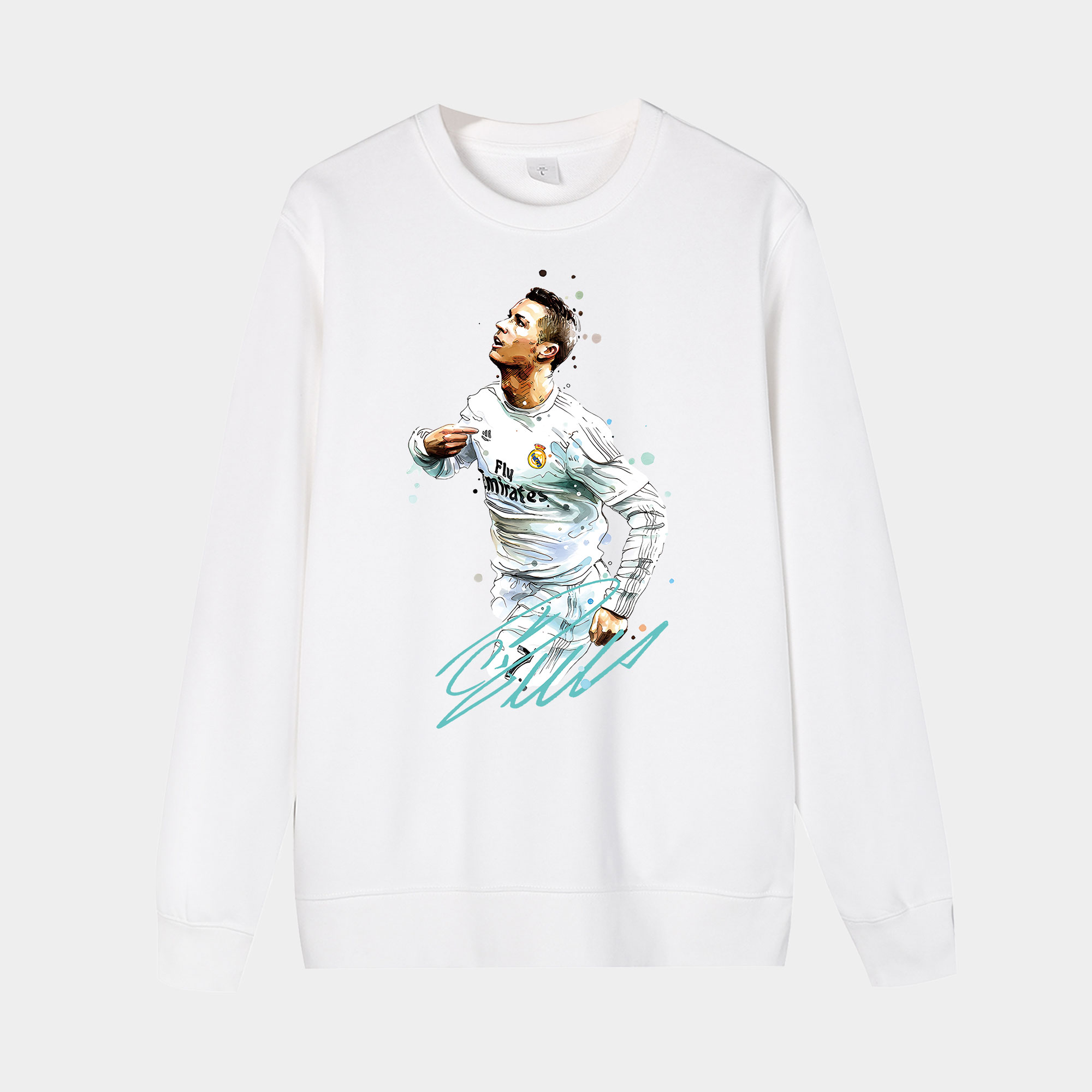 • Real Madrid C.Ronaldo Celebrations White Jersey Unisex Long Sleeves Sweatshirt