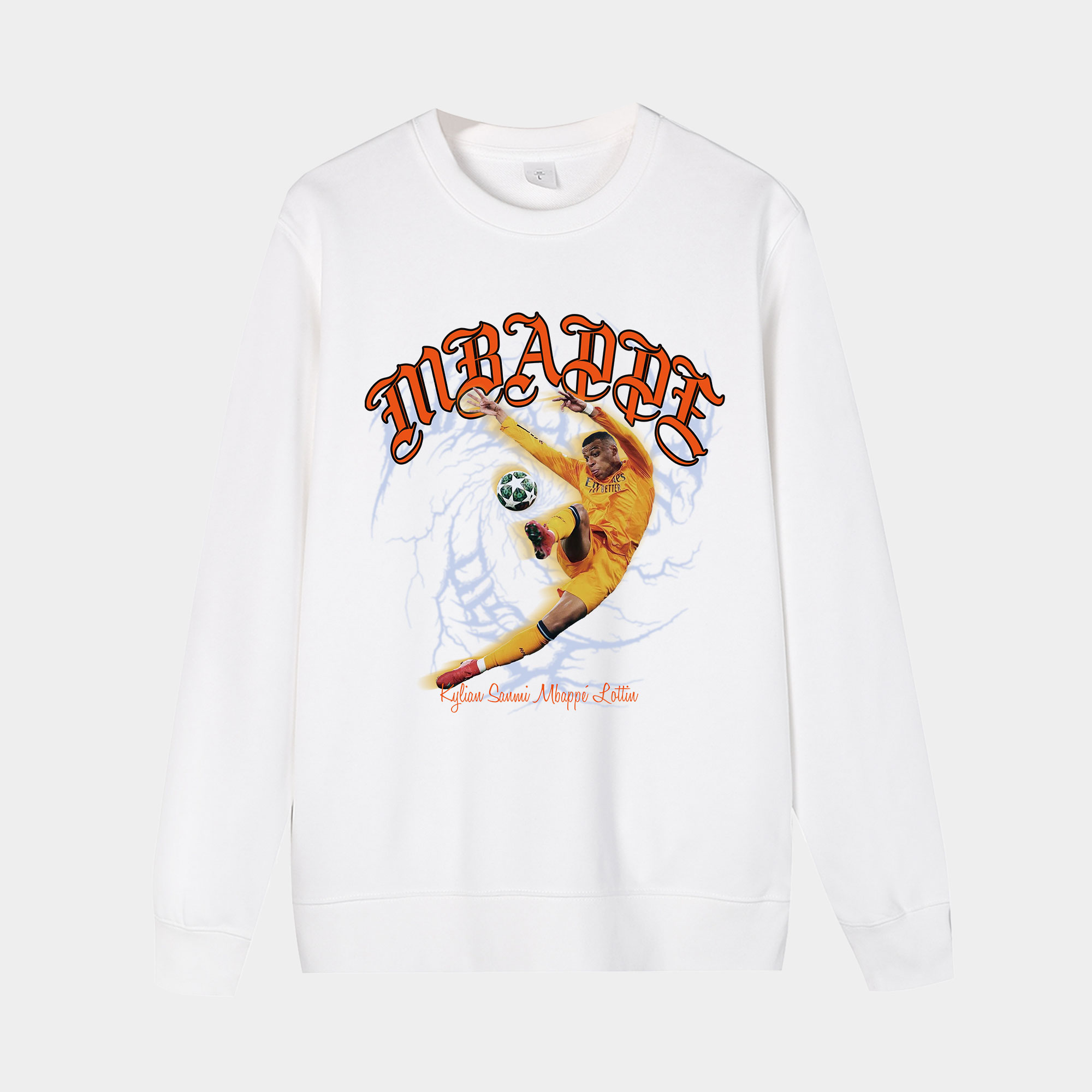 • Real Madrid Mbappe Orange Side Hook Shot Unisex Long Sleeves Sweatshirt