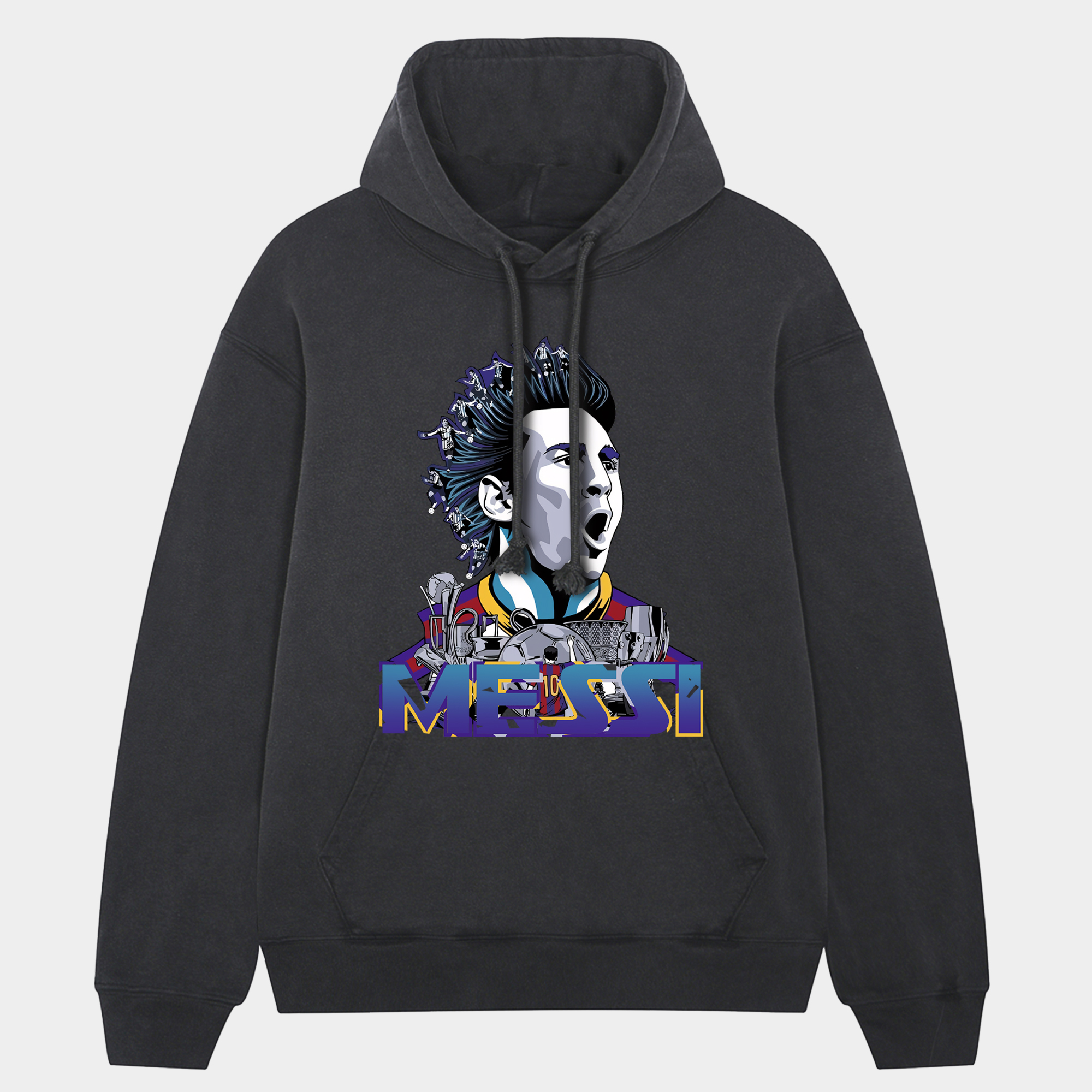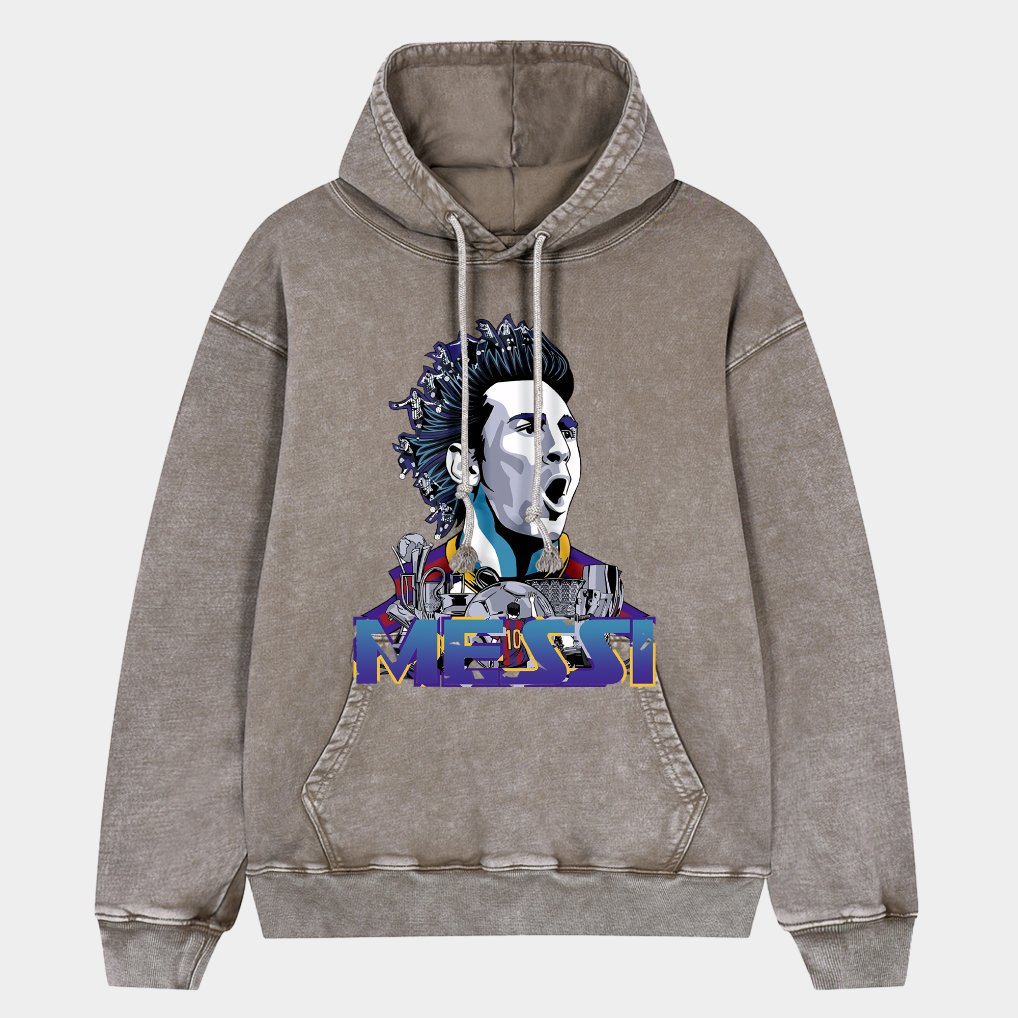 • Barcelona Messi Career Silhouette Art Creation Oversized Washed Pullover Hoodie