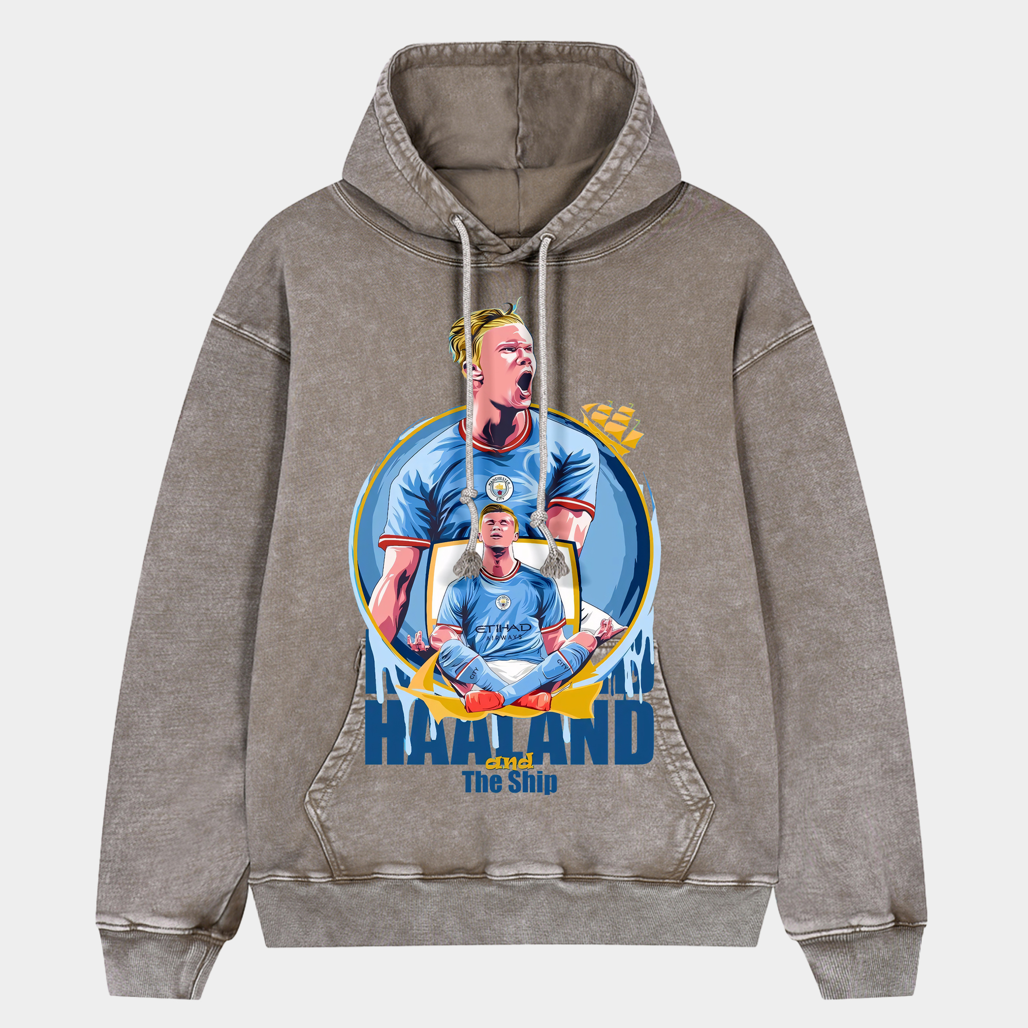 Manchester City Haaland Celebration Pose Oversized Washed Pullover Hoodie