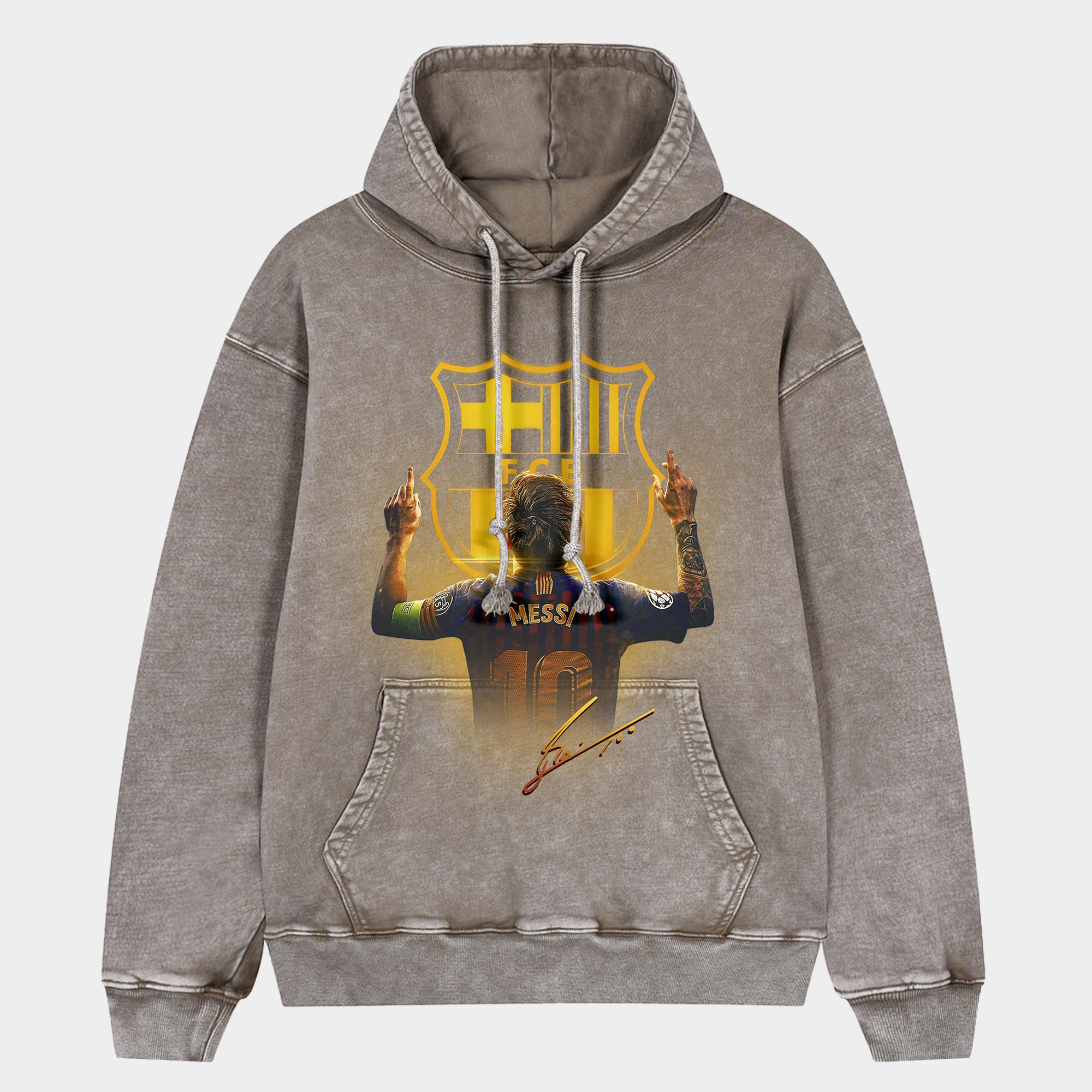 Barcelona Messi 10 Back Oversized Washed Pullover Hoodie