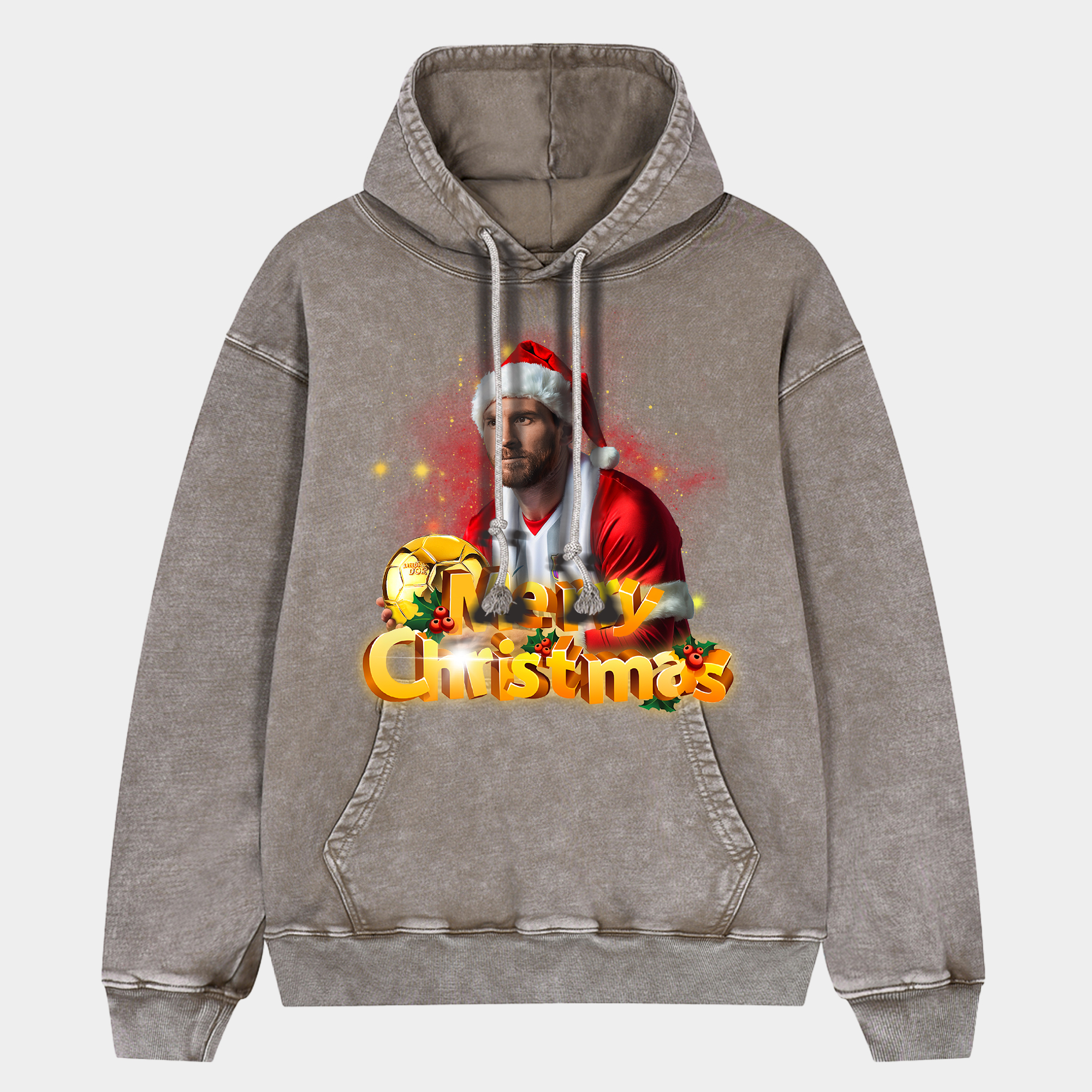 • Messi Ballon d'Or Merry Christmas Oversized Washed Pullover Hoodie