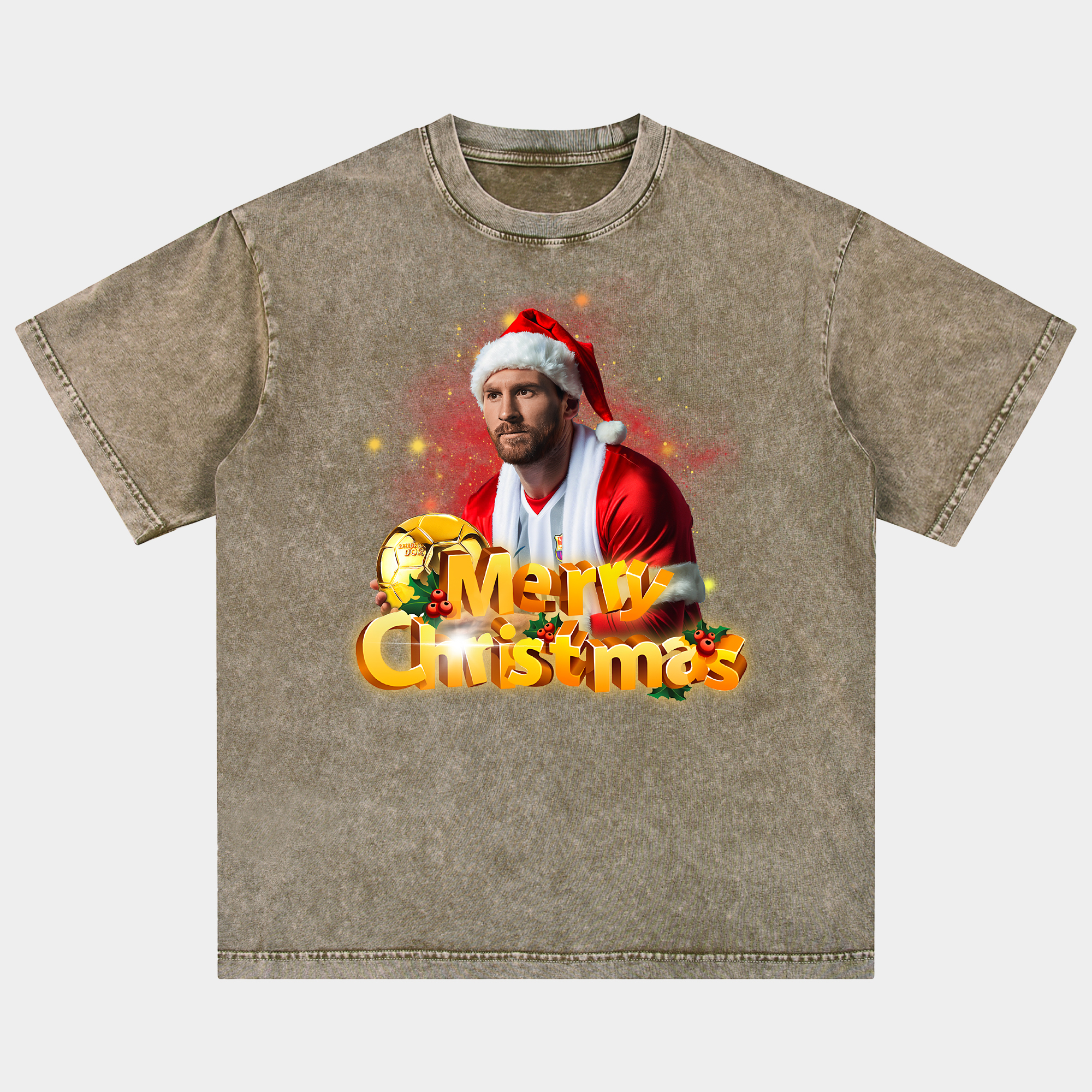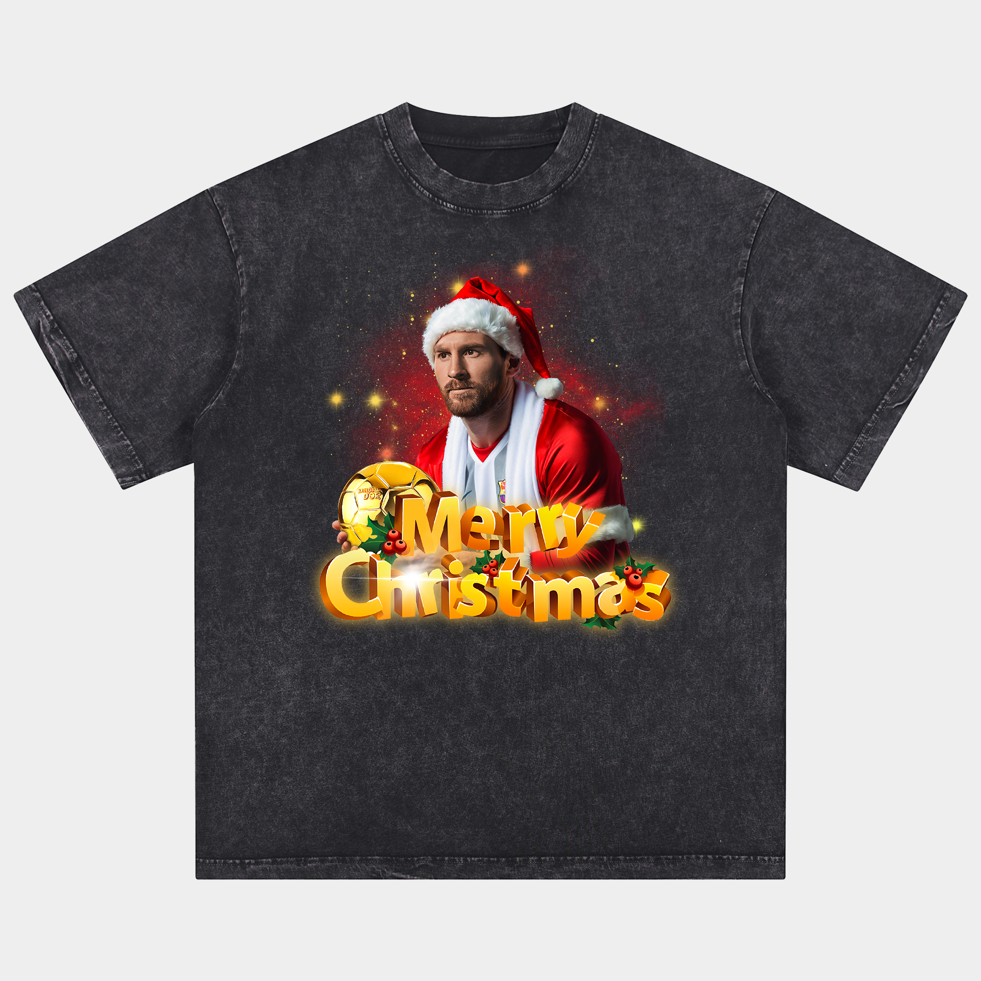 • Messi Ballon d'Or Merry Christmas Oversized Washed T-Shirt