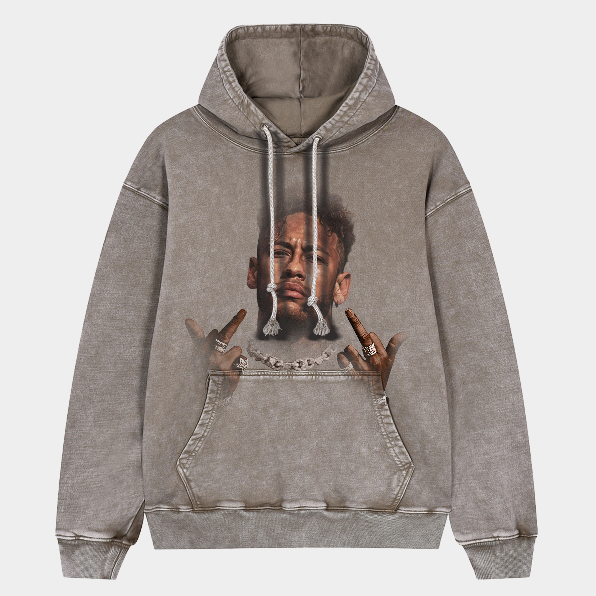 • Neymar Jr. Big Face Style Oversized Washed Pullover Hoodie
