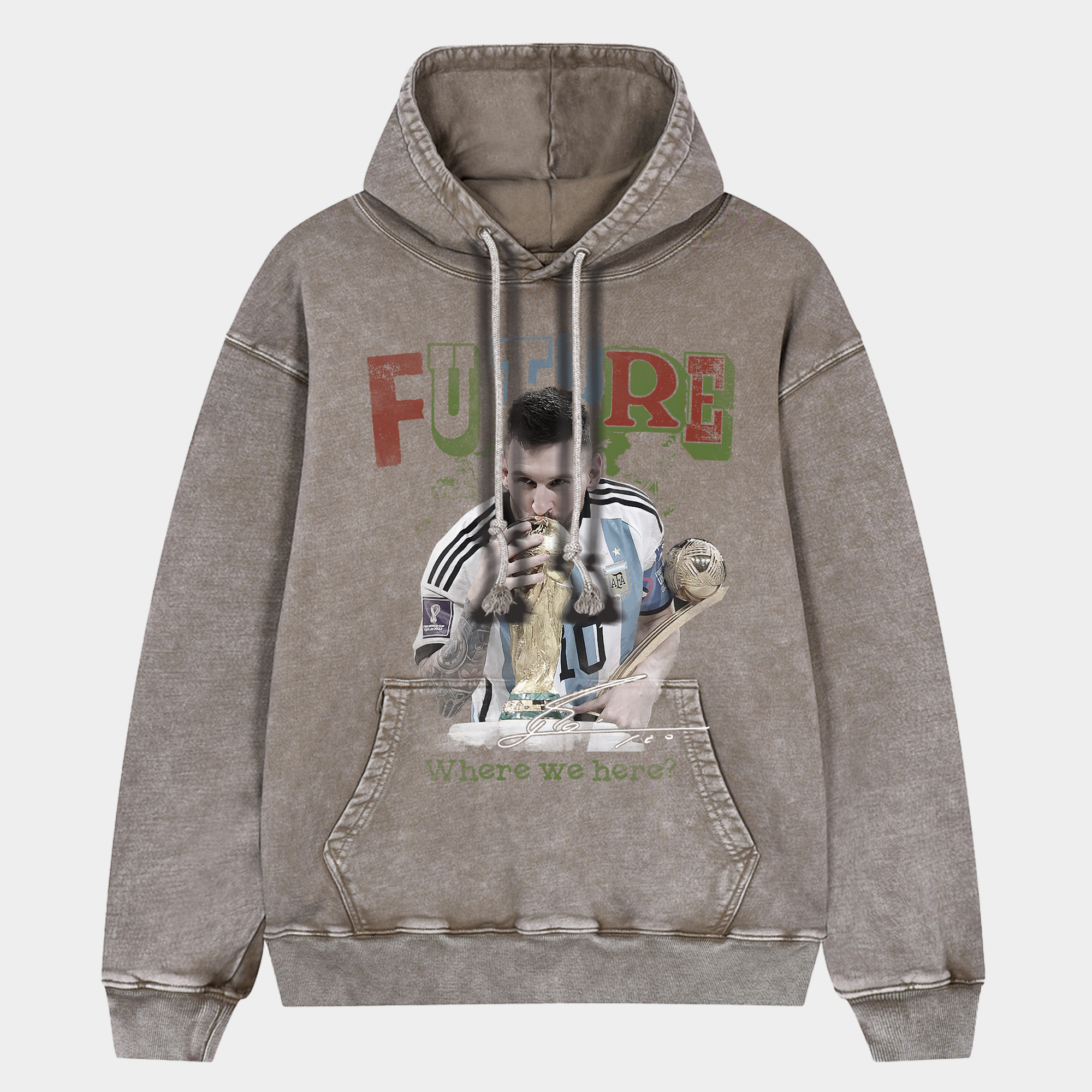 • Messi Kisses the Trophy Classic Moment Oversized Washed Pullover Hoodie