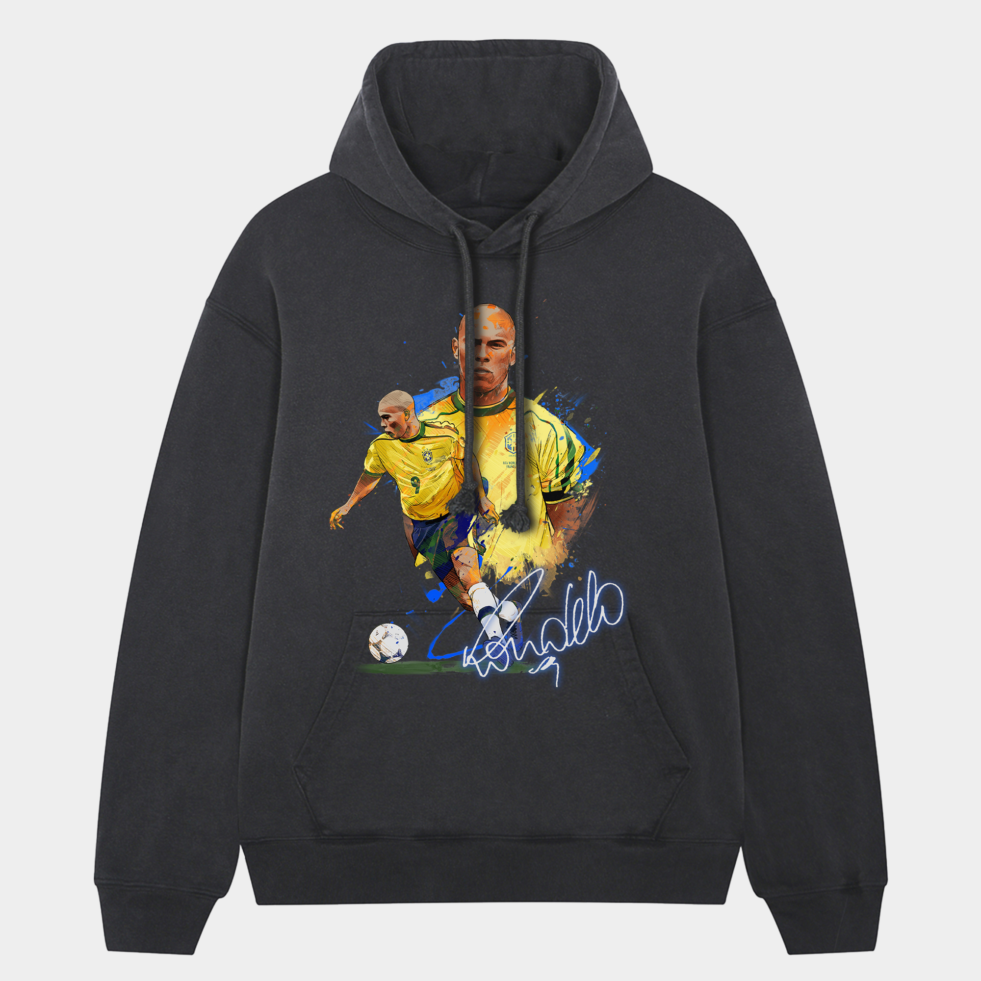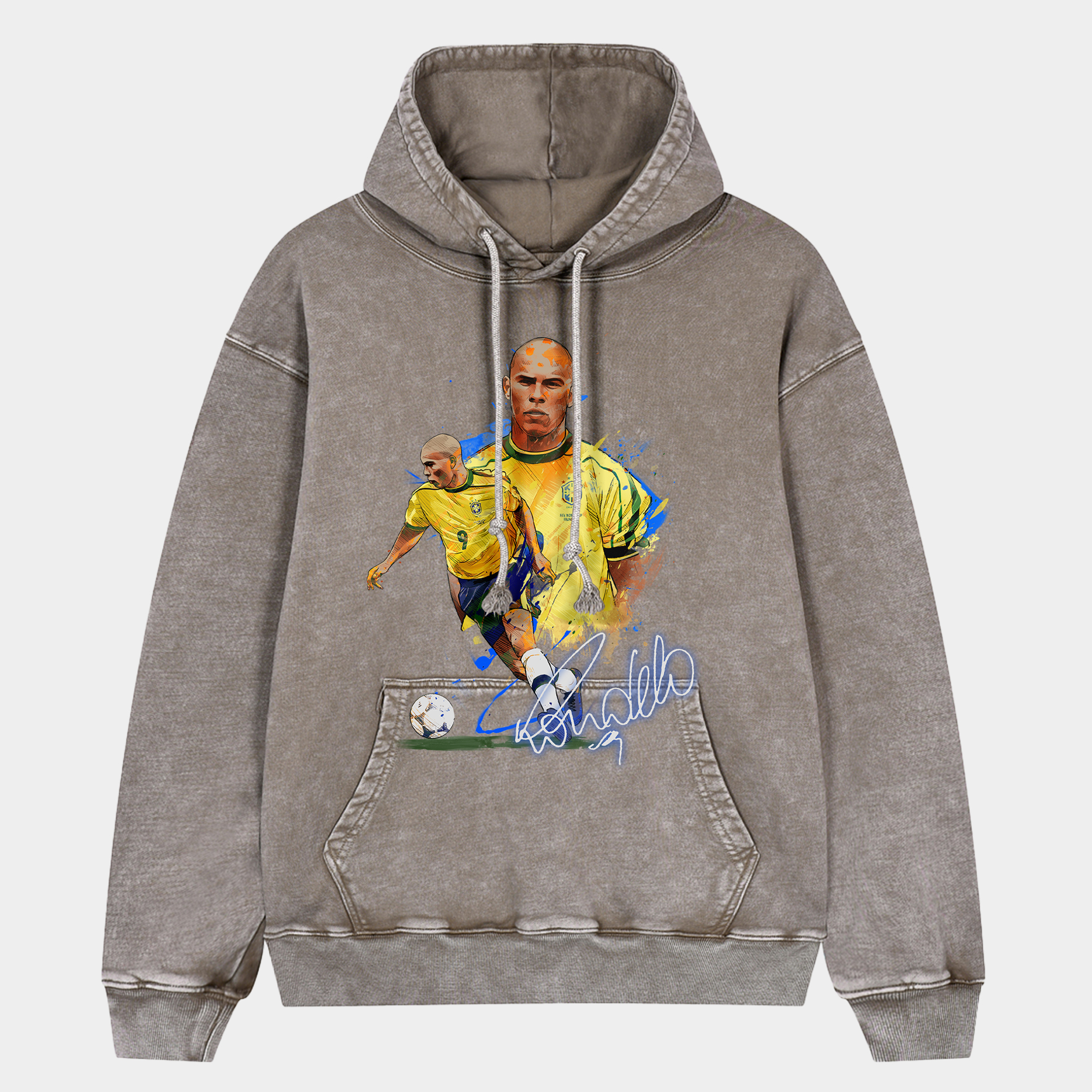 • Brazil Ronaldo 9 Illustration Oversized Washed Pullover Hoodie