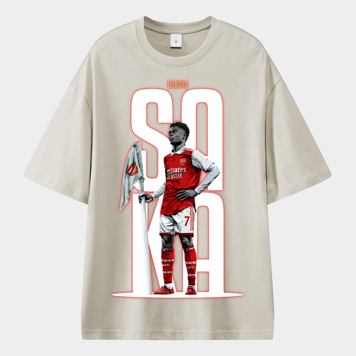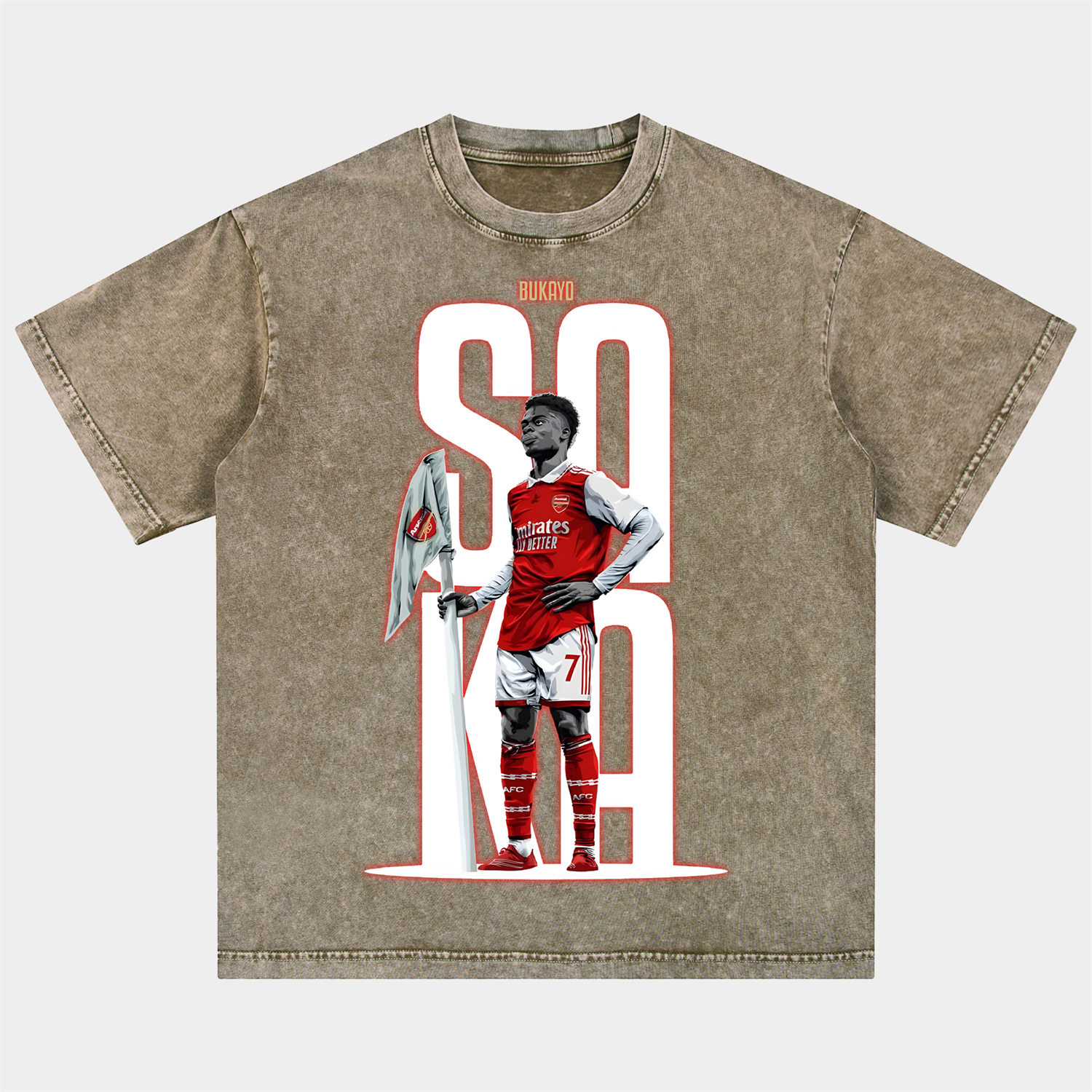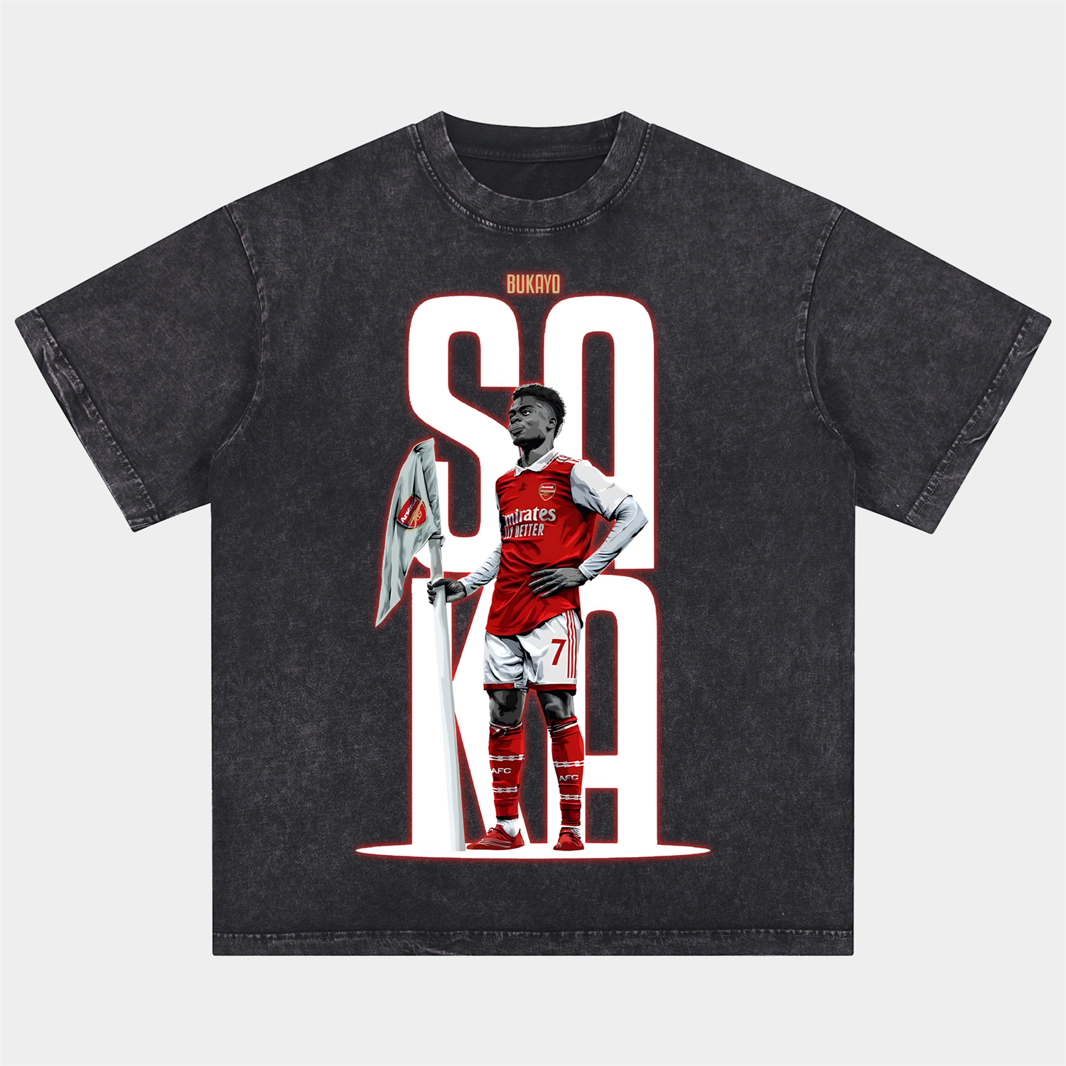 Arsenal Saka Holding The Corner Flag Celebration Pose Oversized Washed T-Shirt