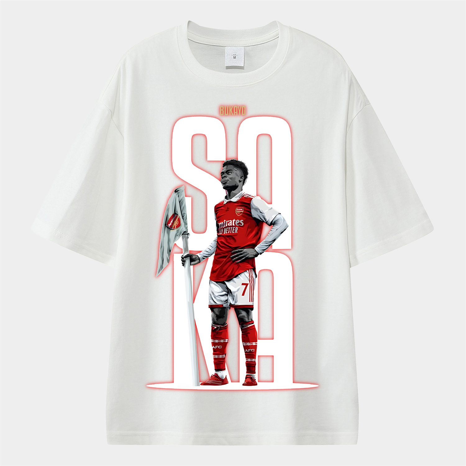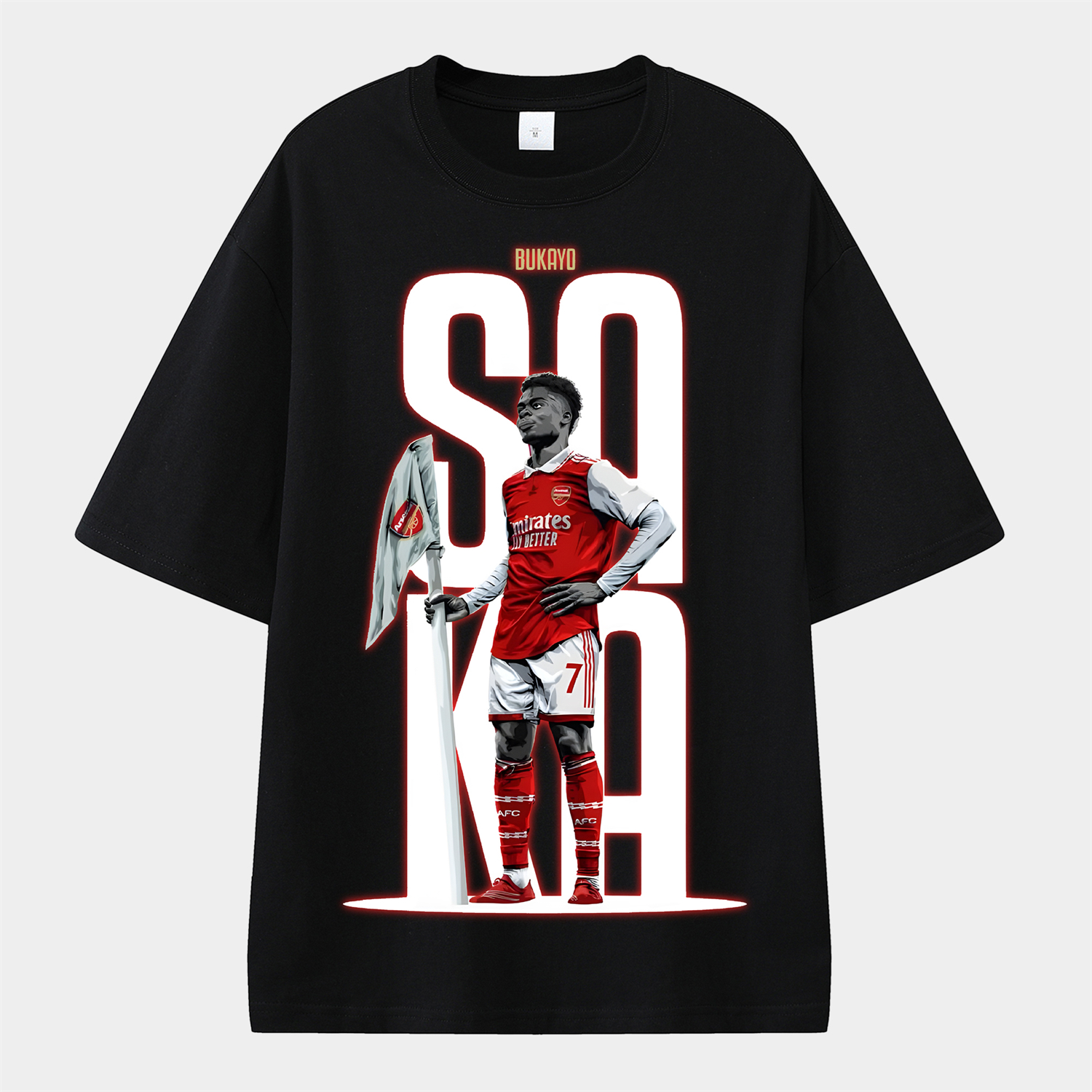 Arsenal Saka Holding The Corner Flag Celebration Pose Unisex Pure Cotton T-shirt