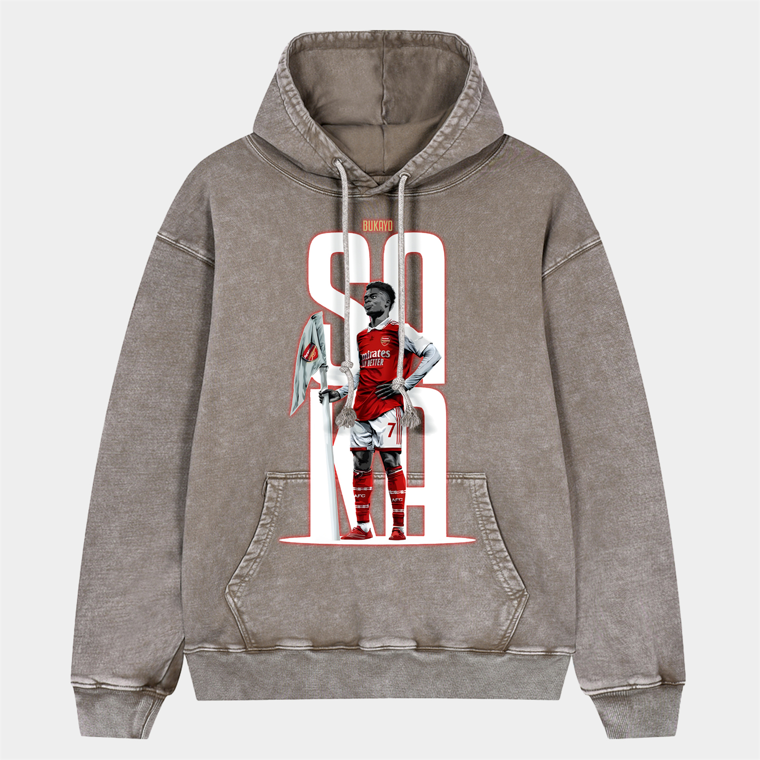 Arsenal Saka Holding The Corner Flag Celebration Pose Oversized Washed Pullover Hoodie