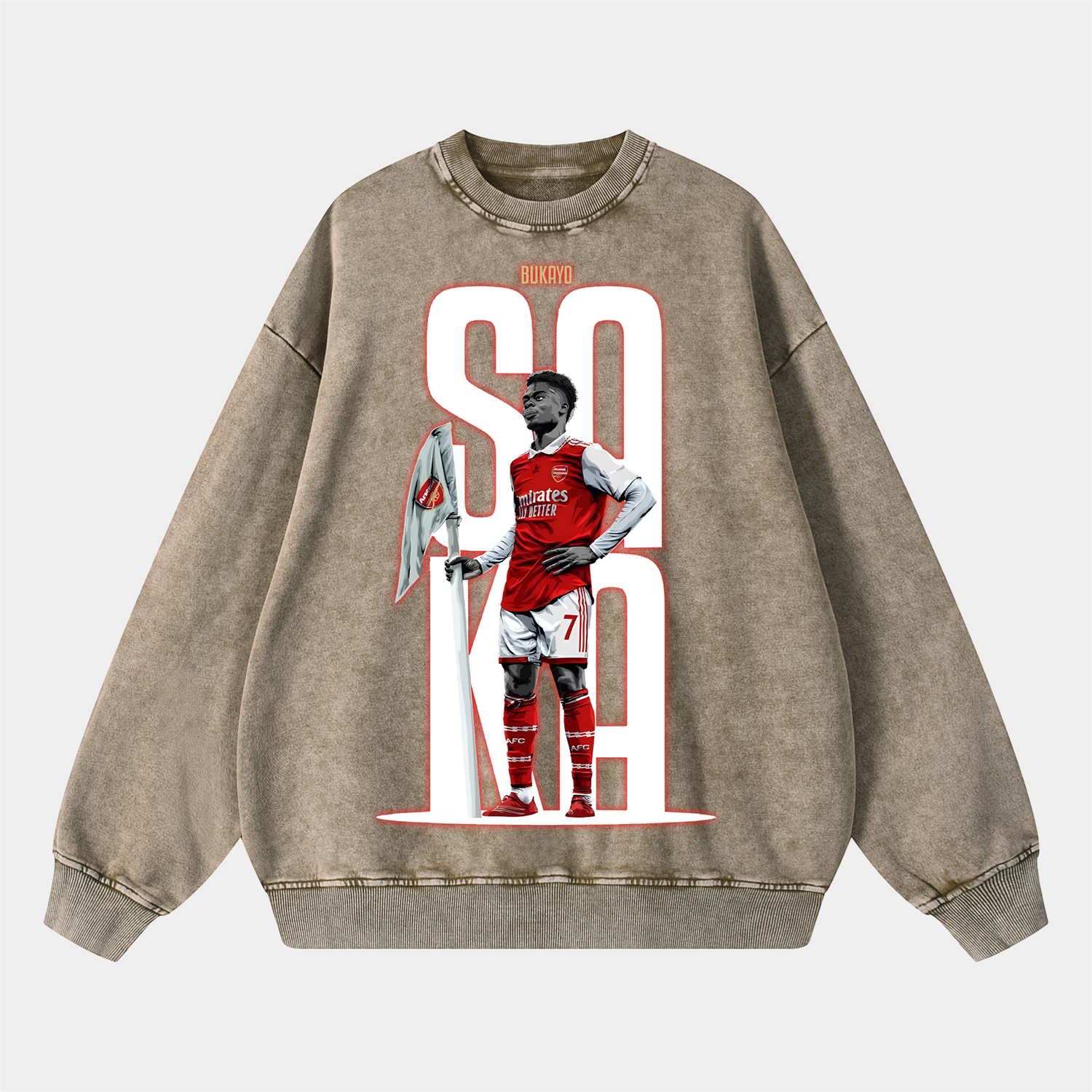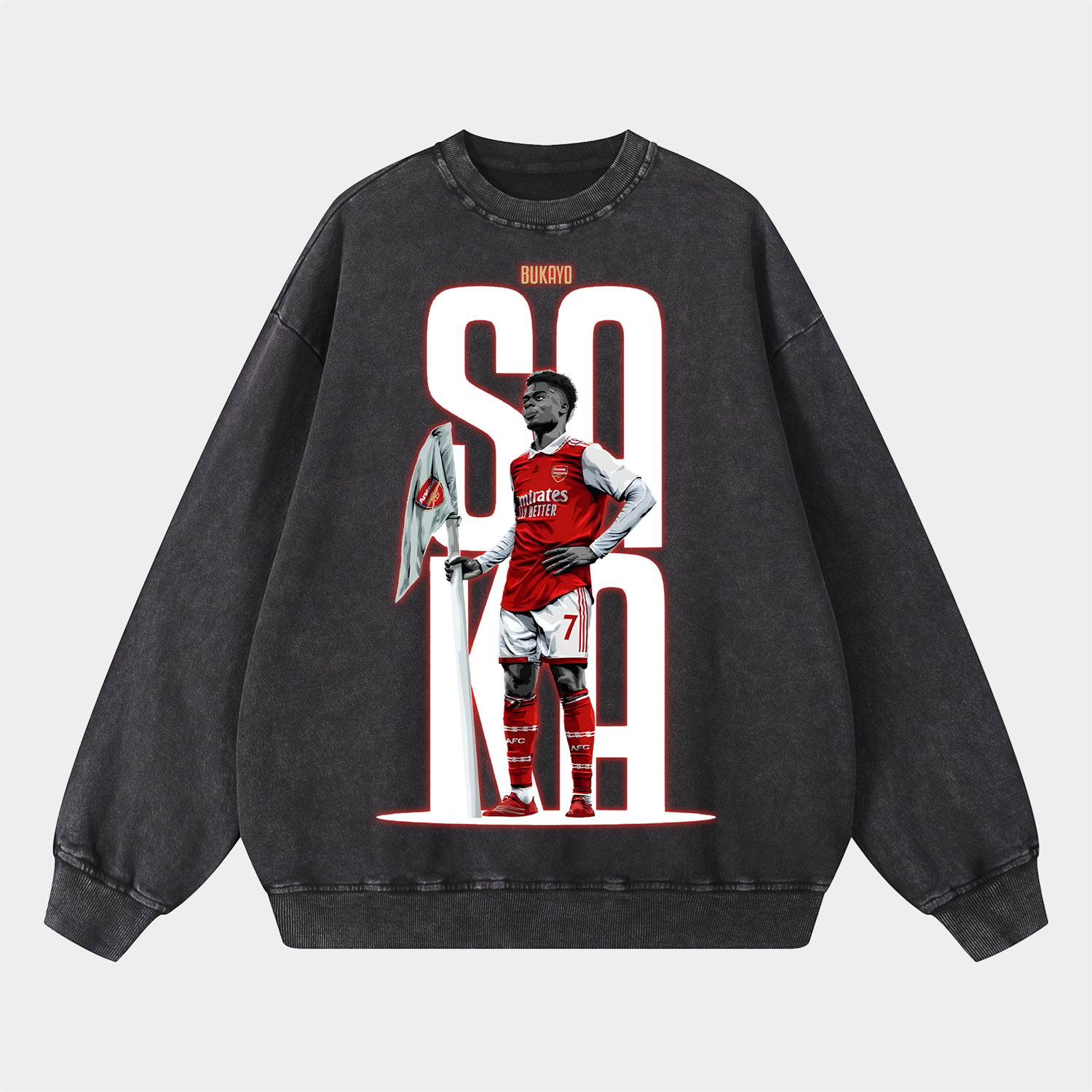 Arsenal Saka Holding The Corner Flag Celebration Pose Oversized Washed Sweatshirt