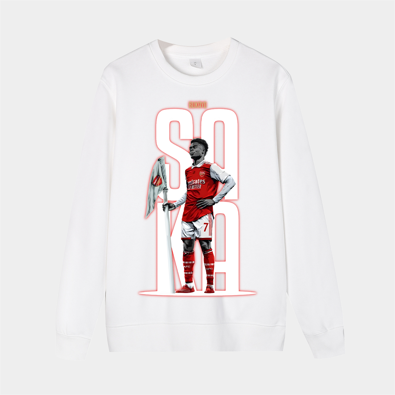 Arsenal Saka Holding The Corner Flag Celebration Pose Unisex Long Sleeves Sweatshirt