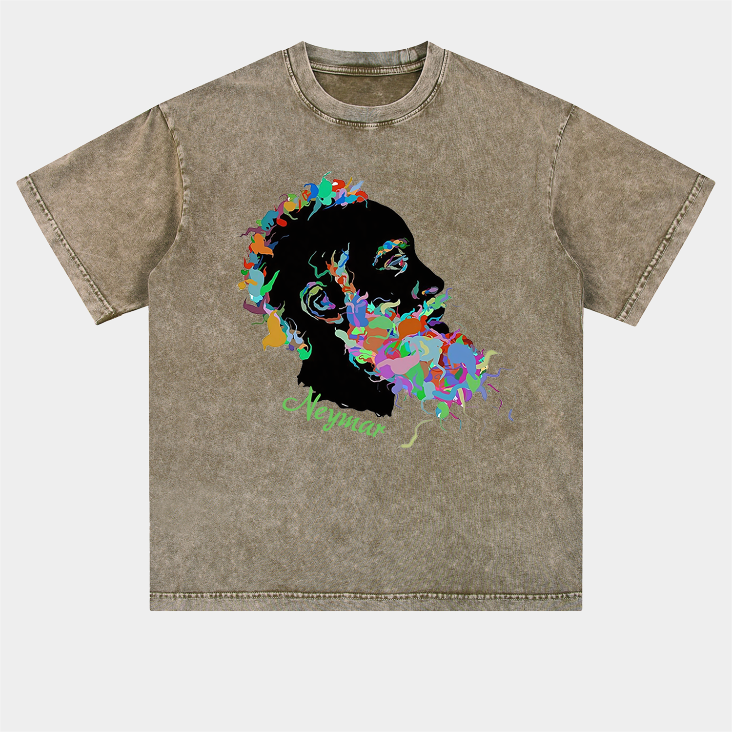 Brazil Neymar Colorful Silhouette Art Oversized Washed T-Shirt