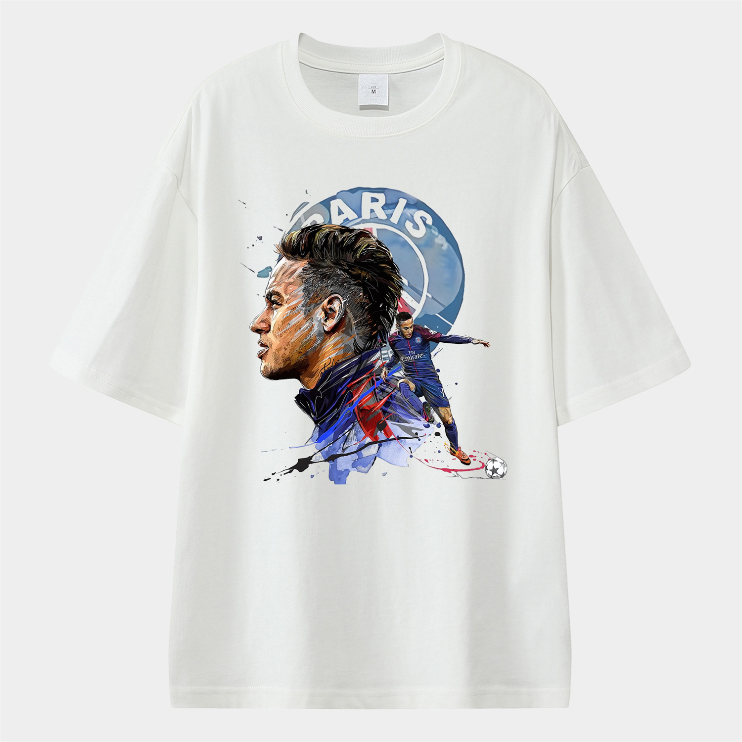 Paris Saint-Germain Neymar Jr Painted Avatar & Team Logo Unisex Pure Cotton T-shirt