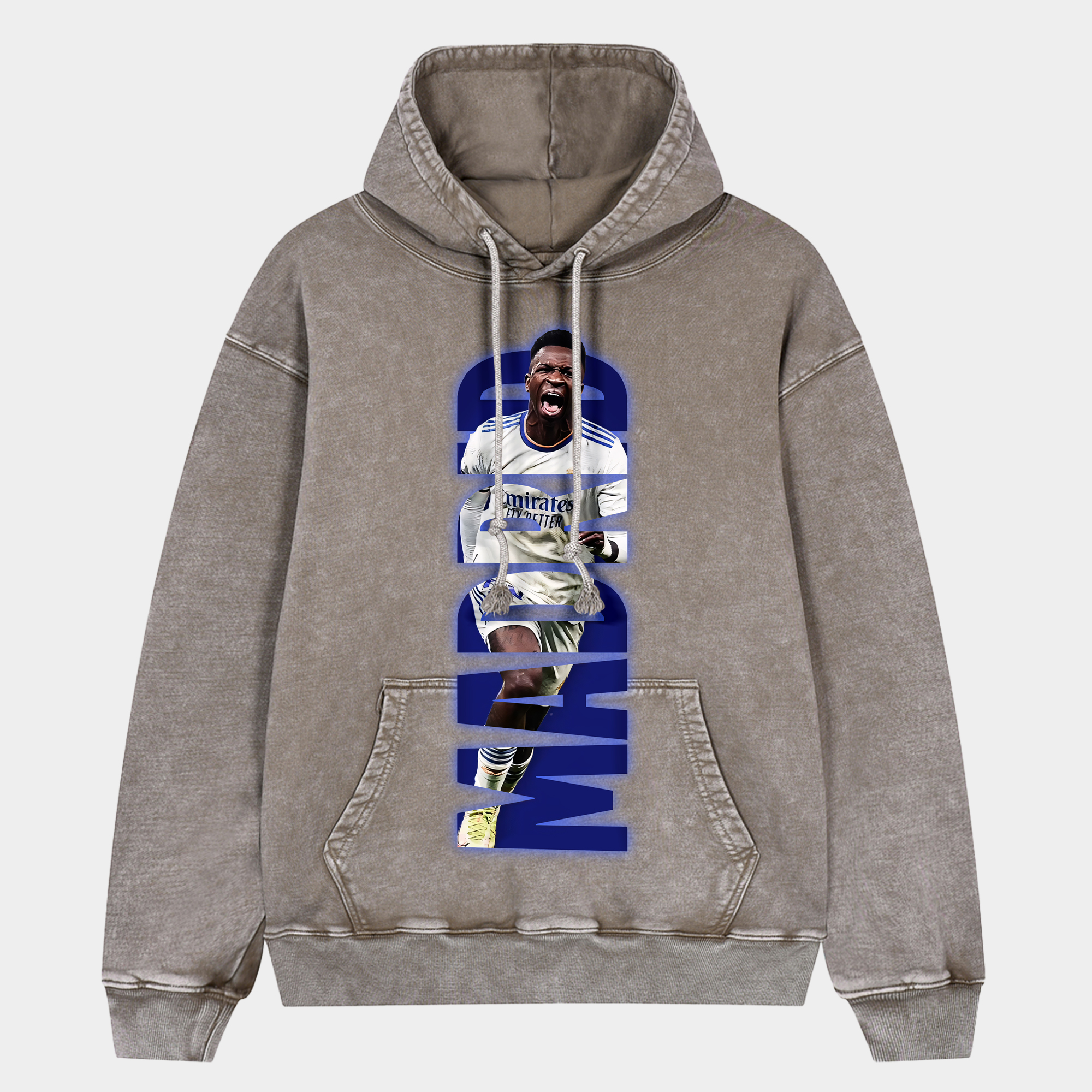 • Real Madrid Vinicius Junior White & Blue Oversized Washed Pullover Hoodie