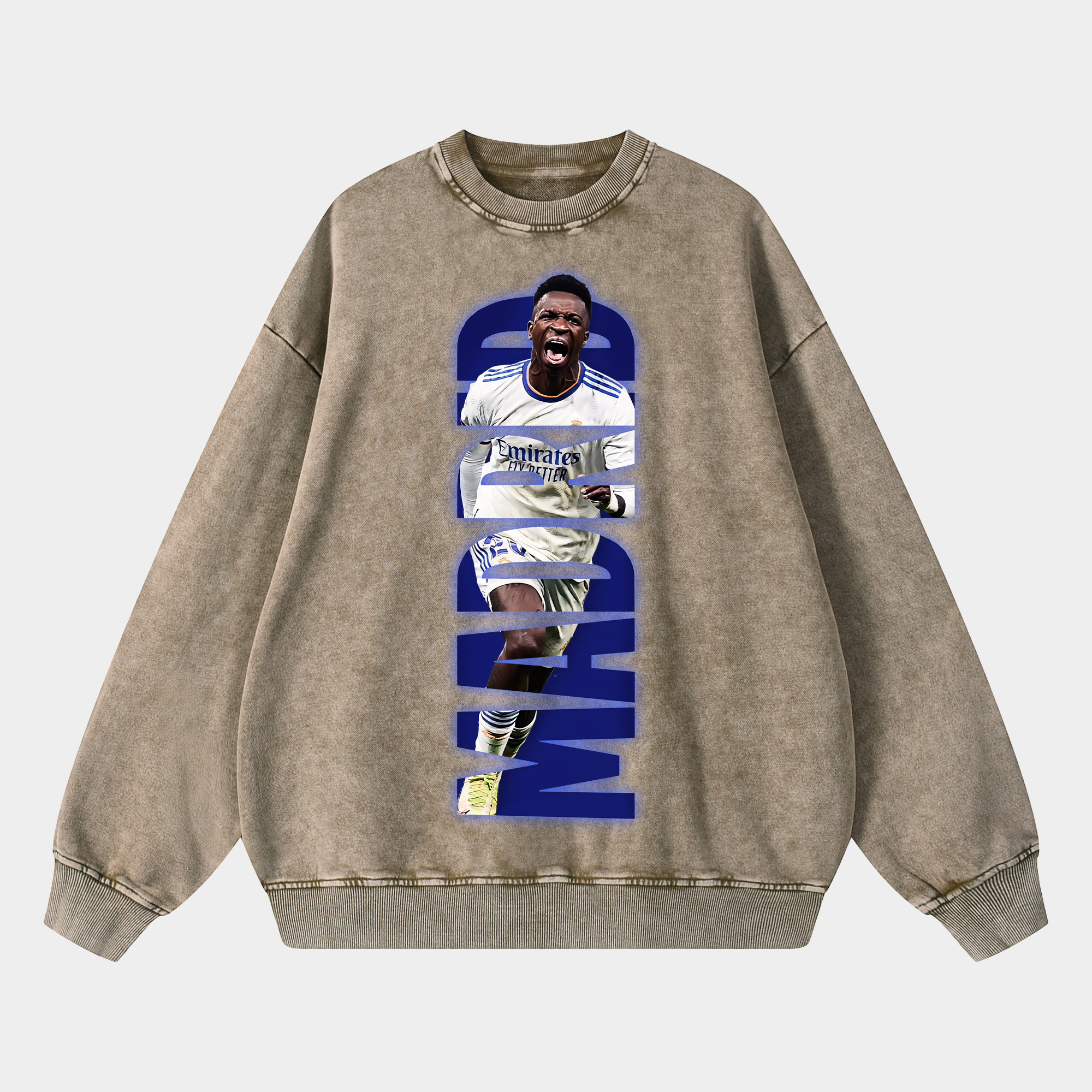 • Real Madrid Vinicius Junior White & Blue Oversized Washed Sweatshirt