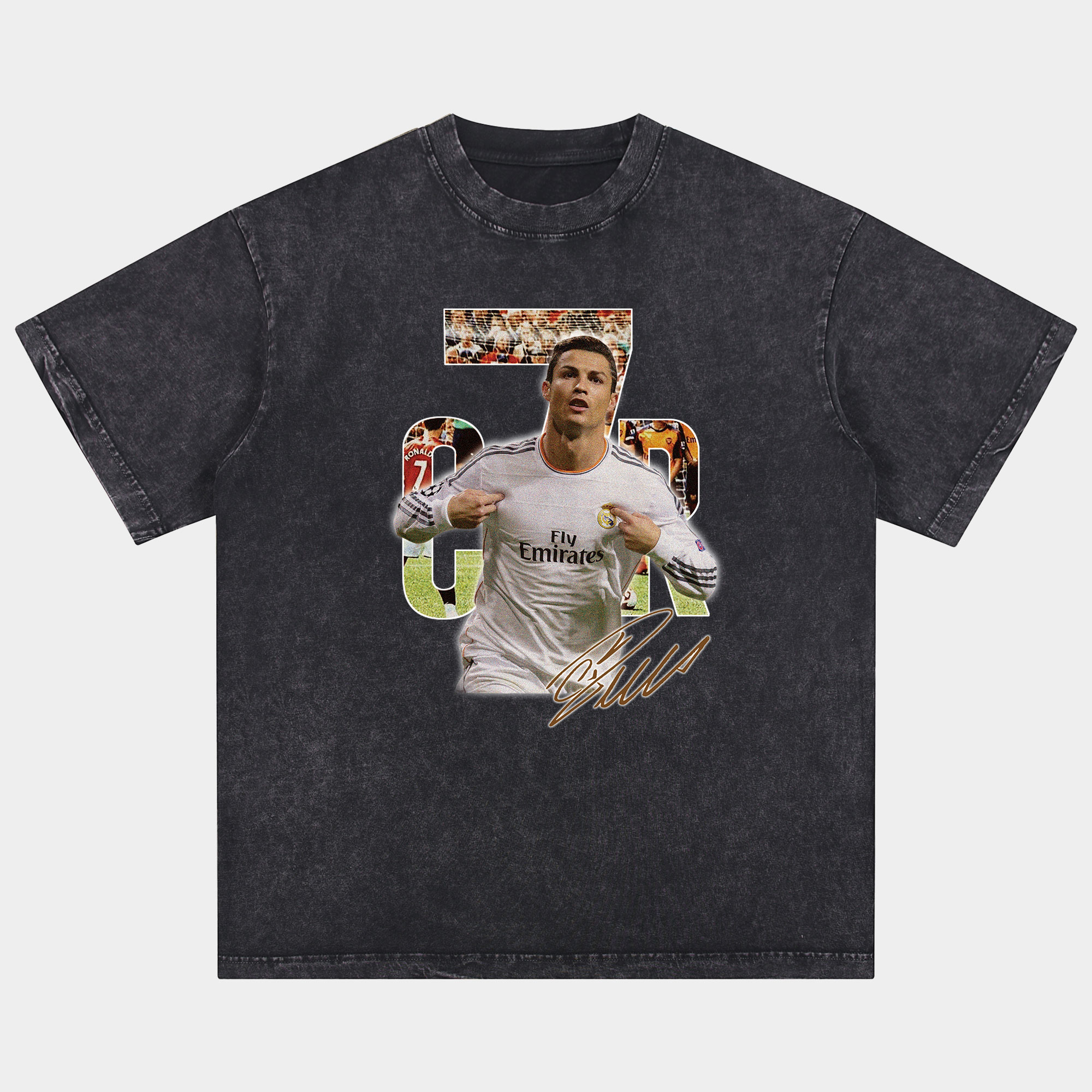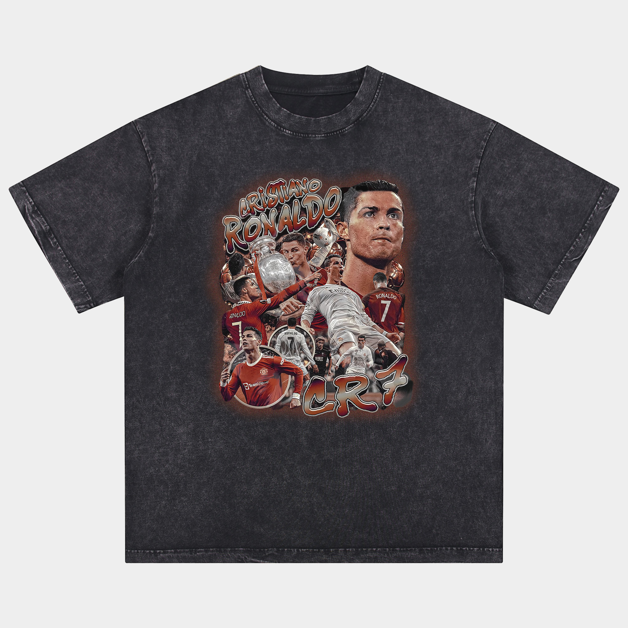 C.Ronaldo's Man United and Real Madrid Collage Oversized Washed T-Shirt