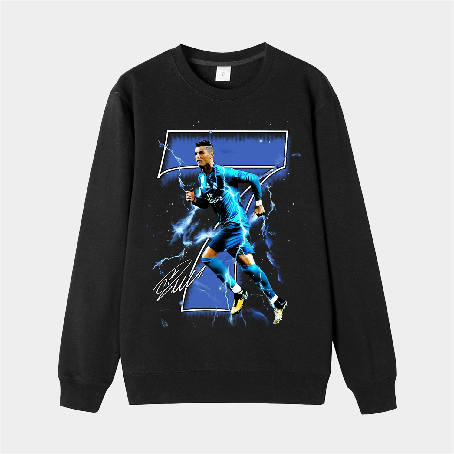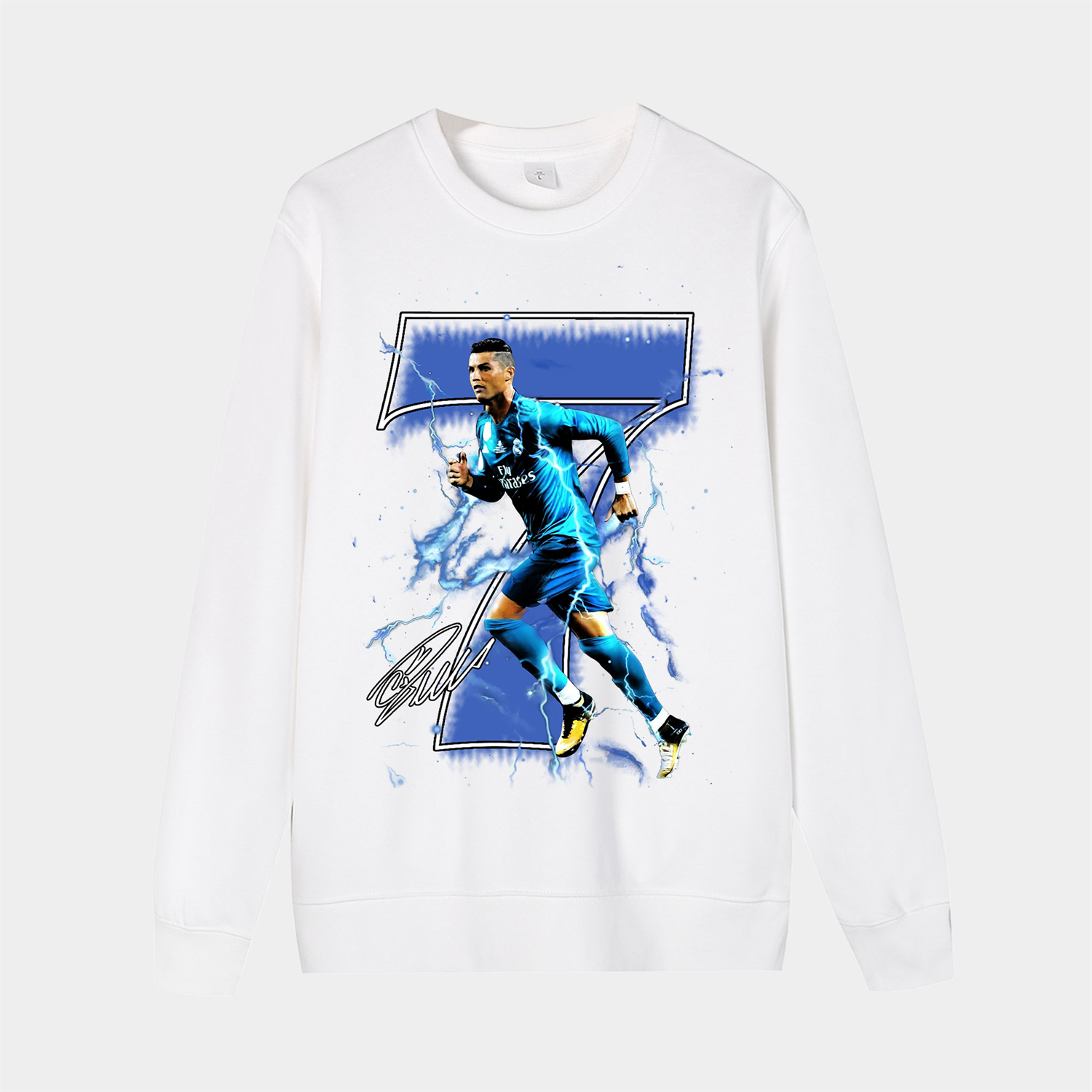 Real Madrid C.Ronaldo 7 Cyan Lightning Running Unisex Long Sleeves Sweatshirt