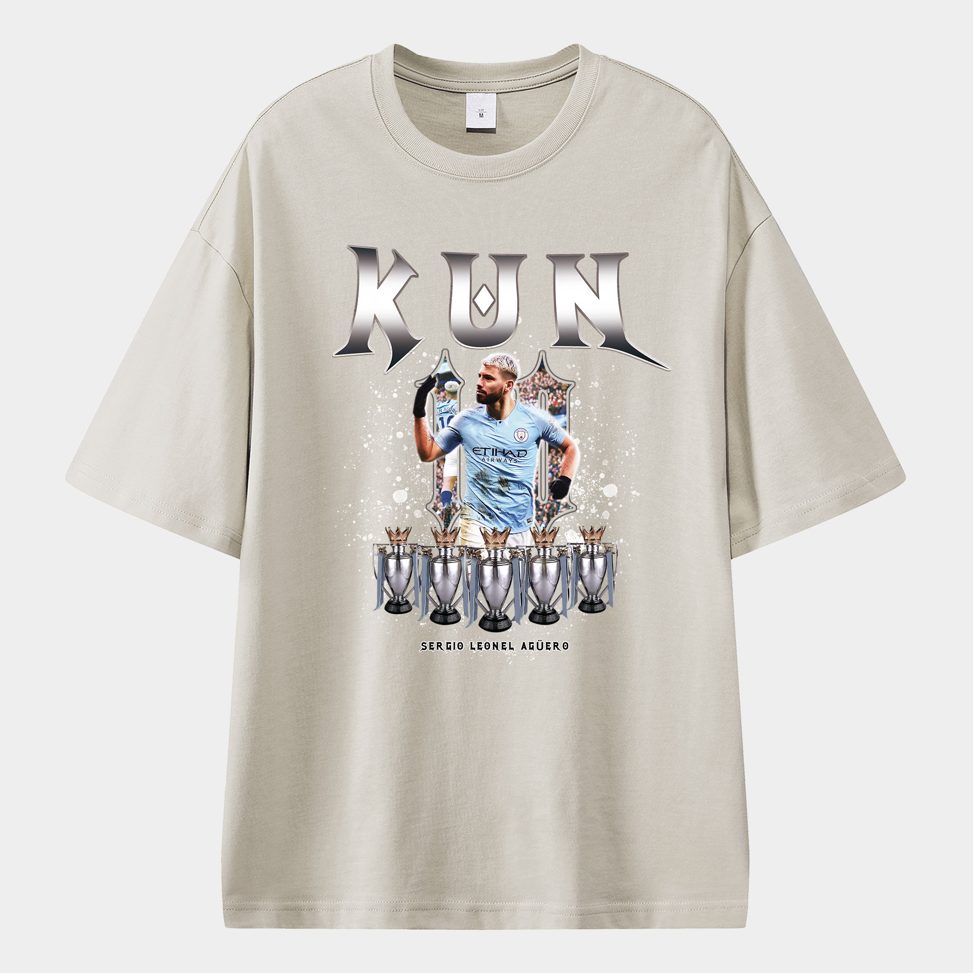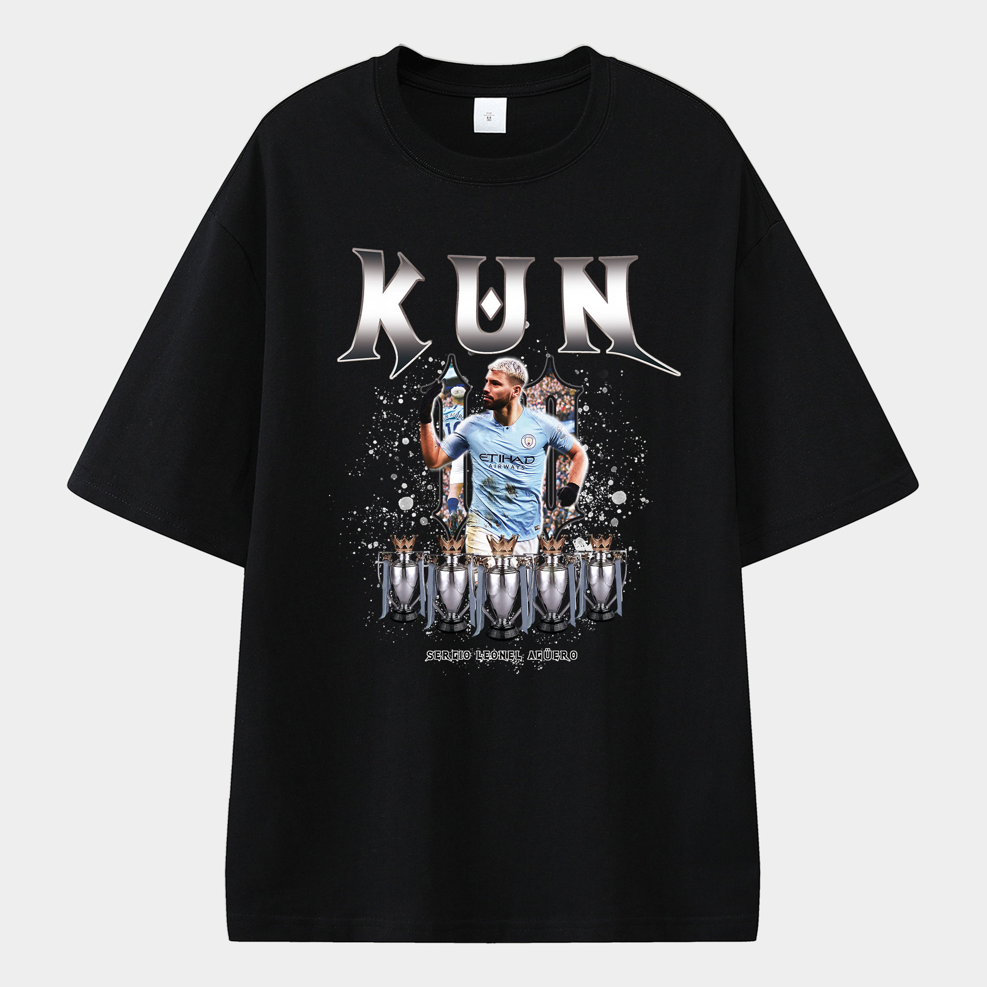 Manchester City Agüero 5 Times Premier League Champions Unisex Pure Cotton T-shirt