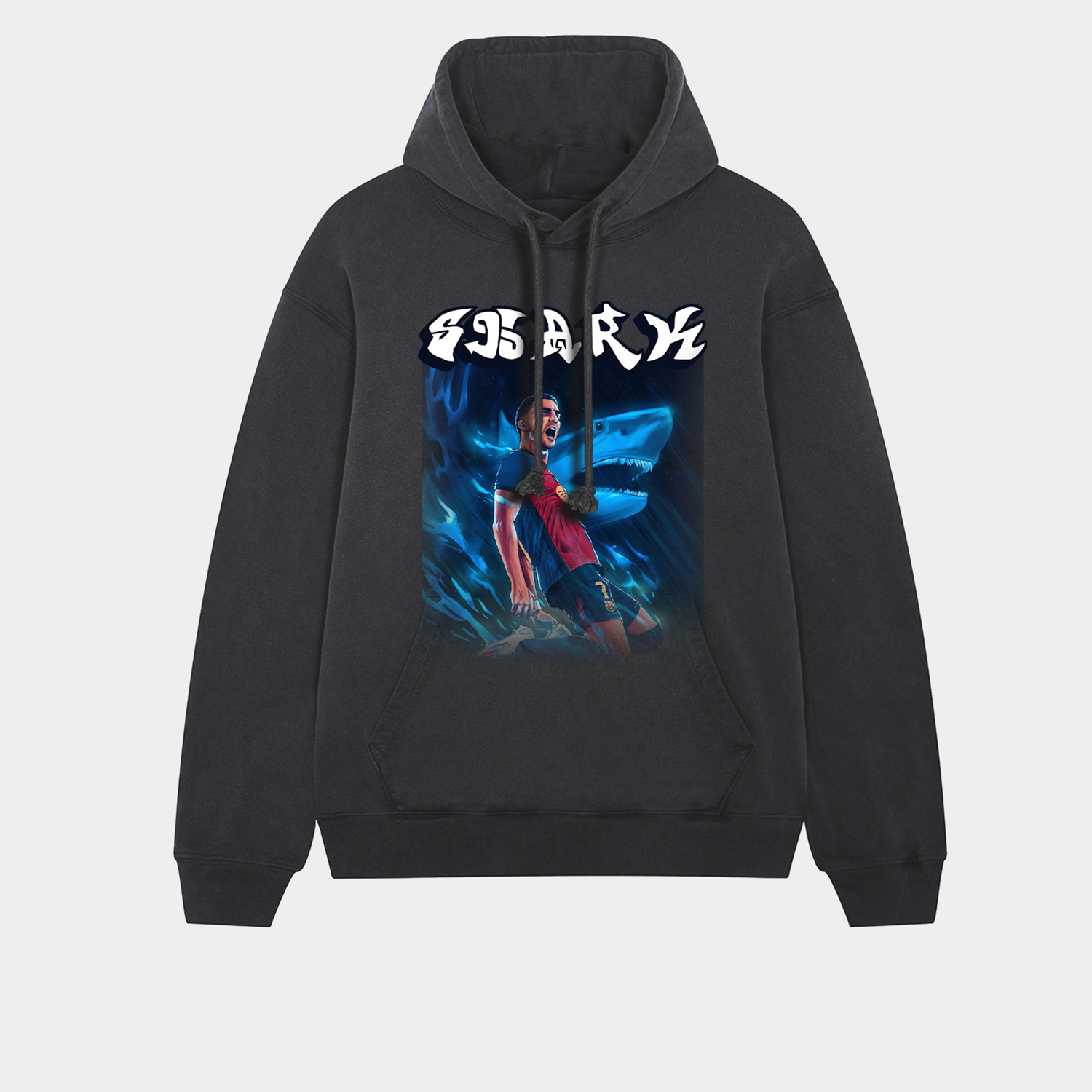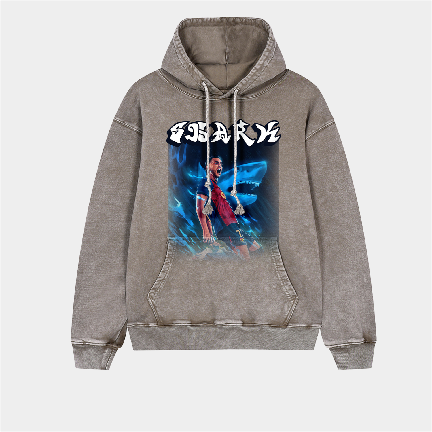 Barcelona Shark Star Celebration Art Oversized Washed Pullover Hoodie