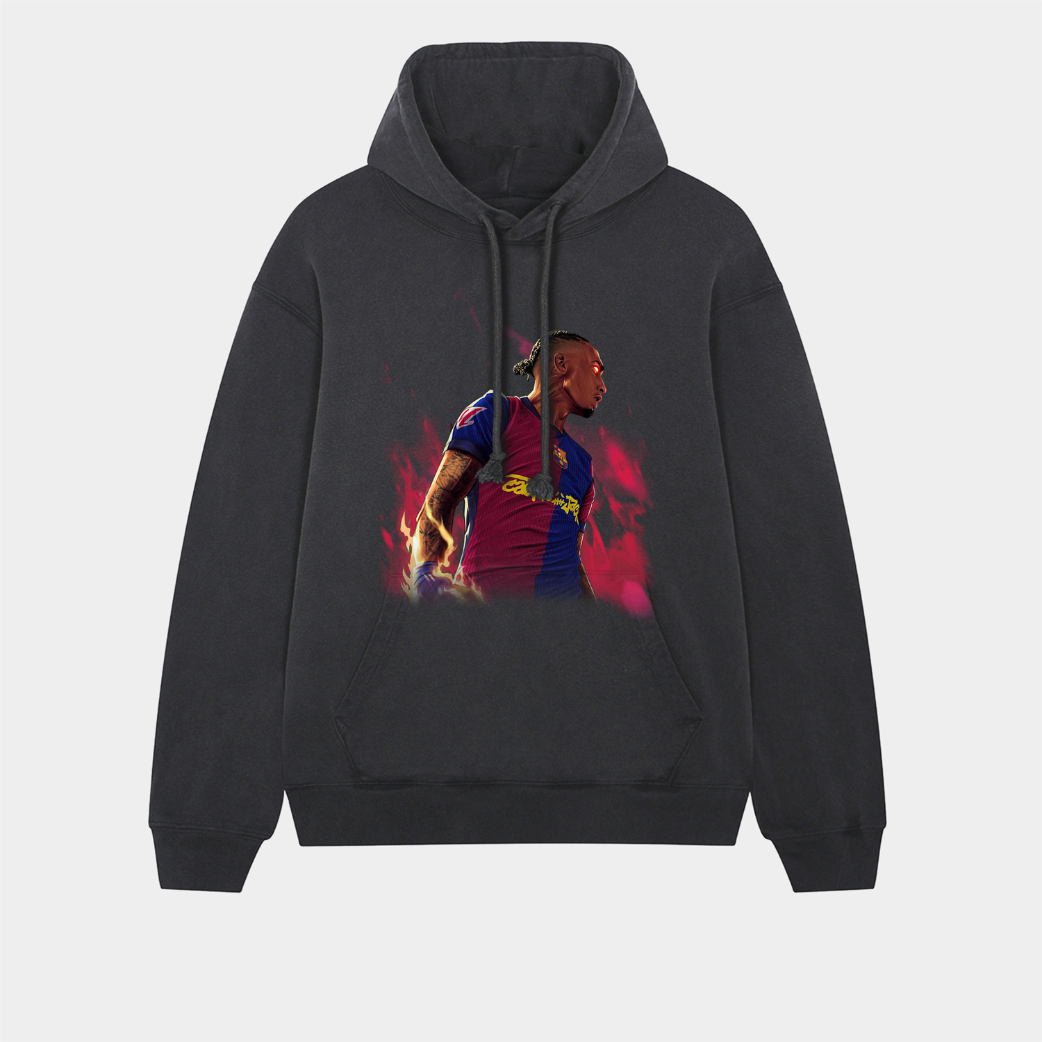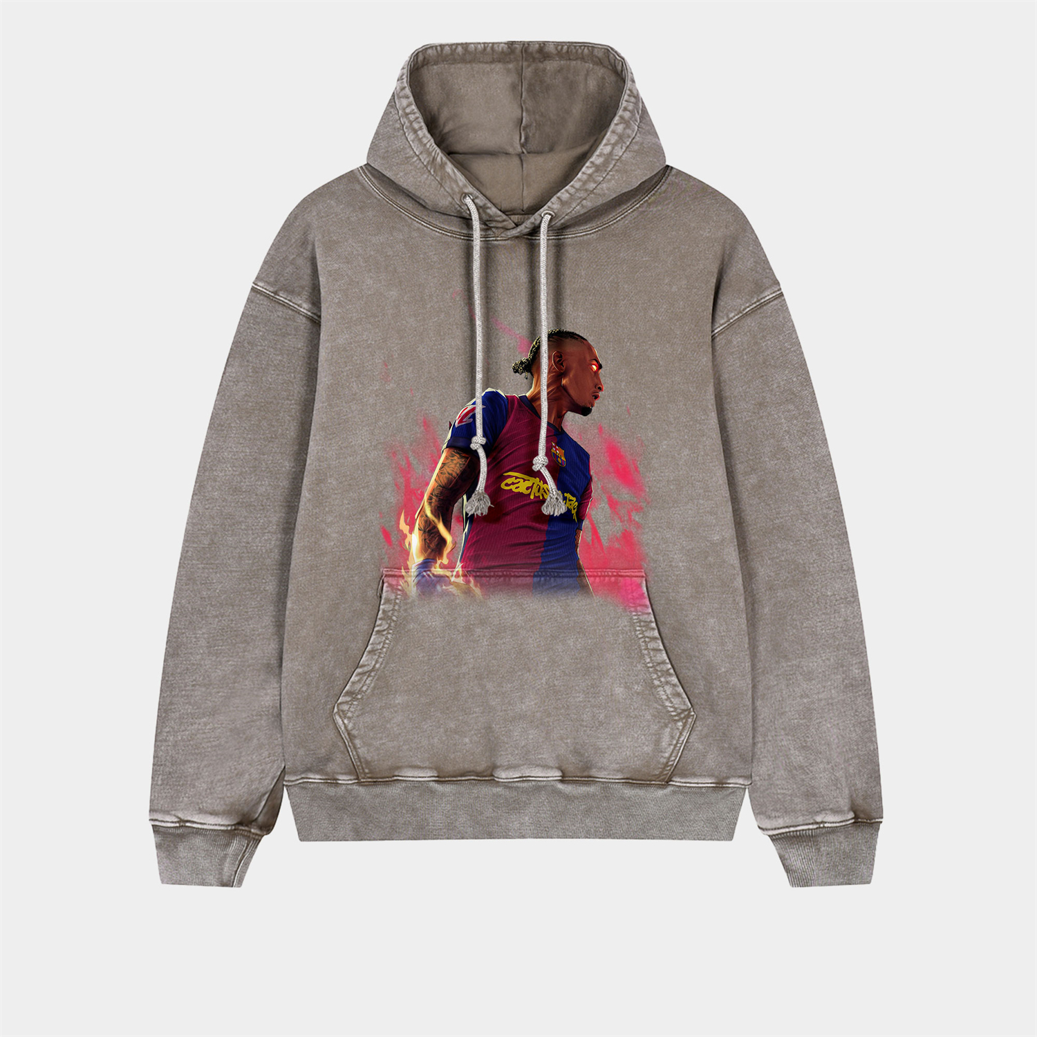 Barcelona Fiery Championship Celebration Oversized Washed Pullover Hoodie