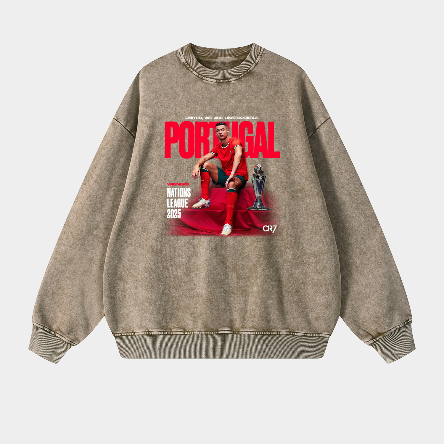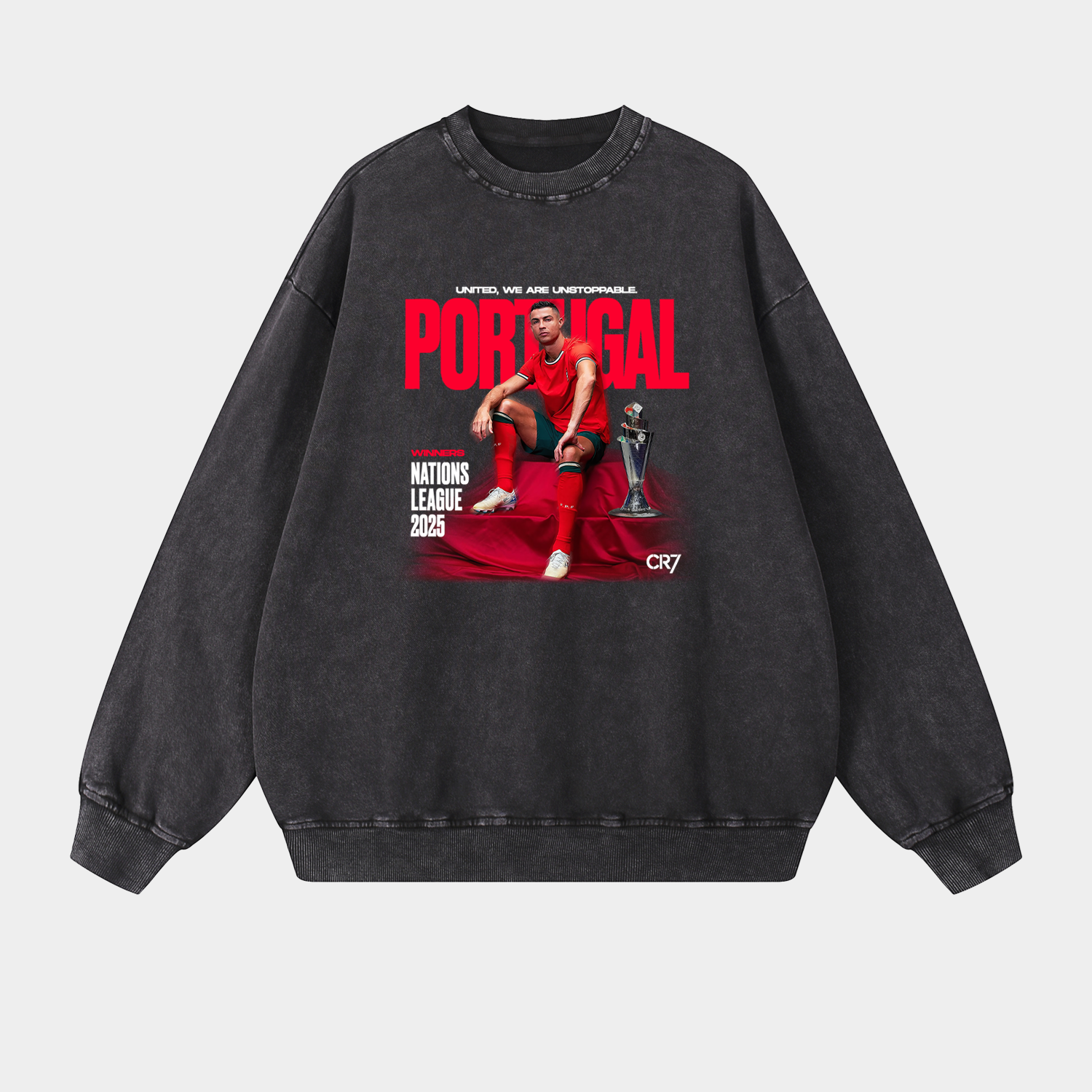 Portugal C.Ronaldo Led Portugal 2025 UEFA Nations League Champions Oversized Washed Sweatshirt