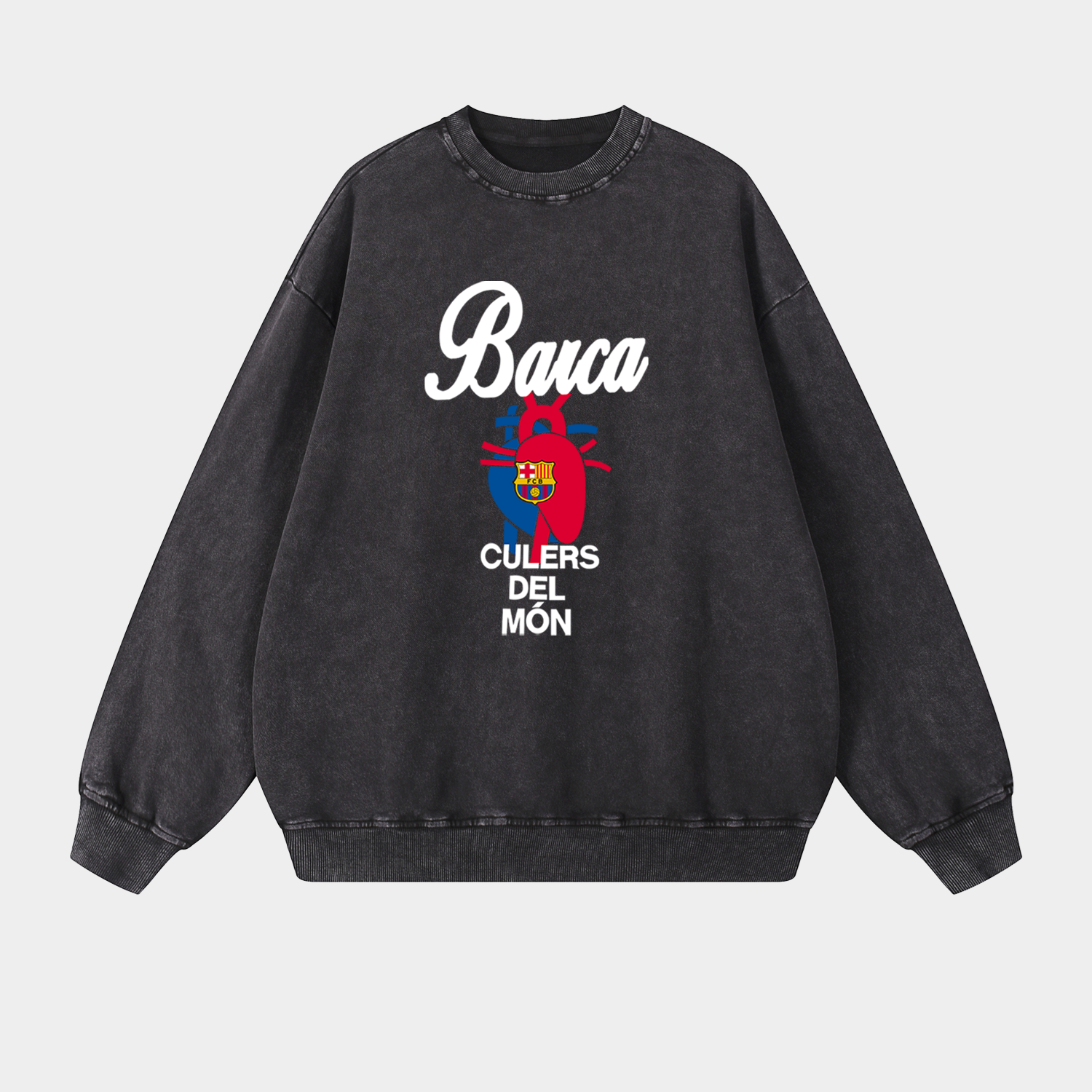 Barcelona Blue & Red Heart Culers Del Mon Oversized Washed Sweatshirt